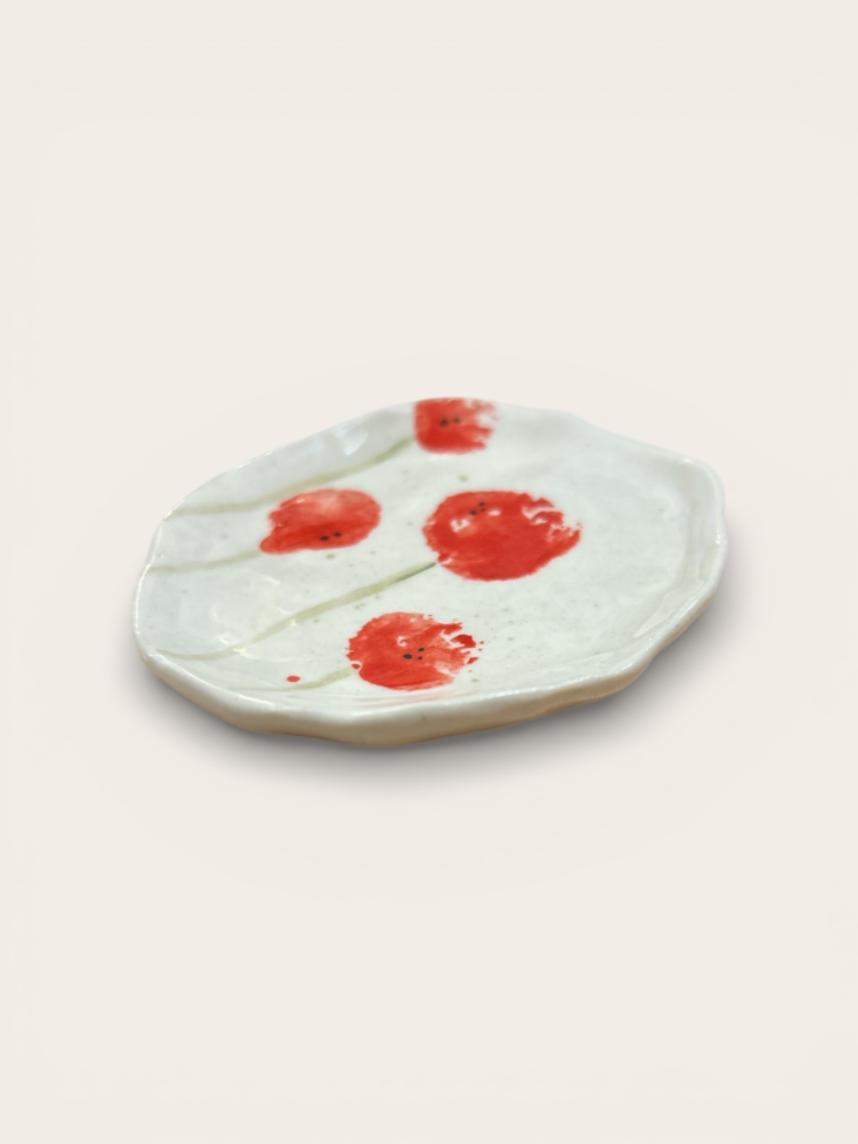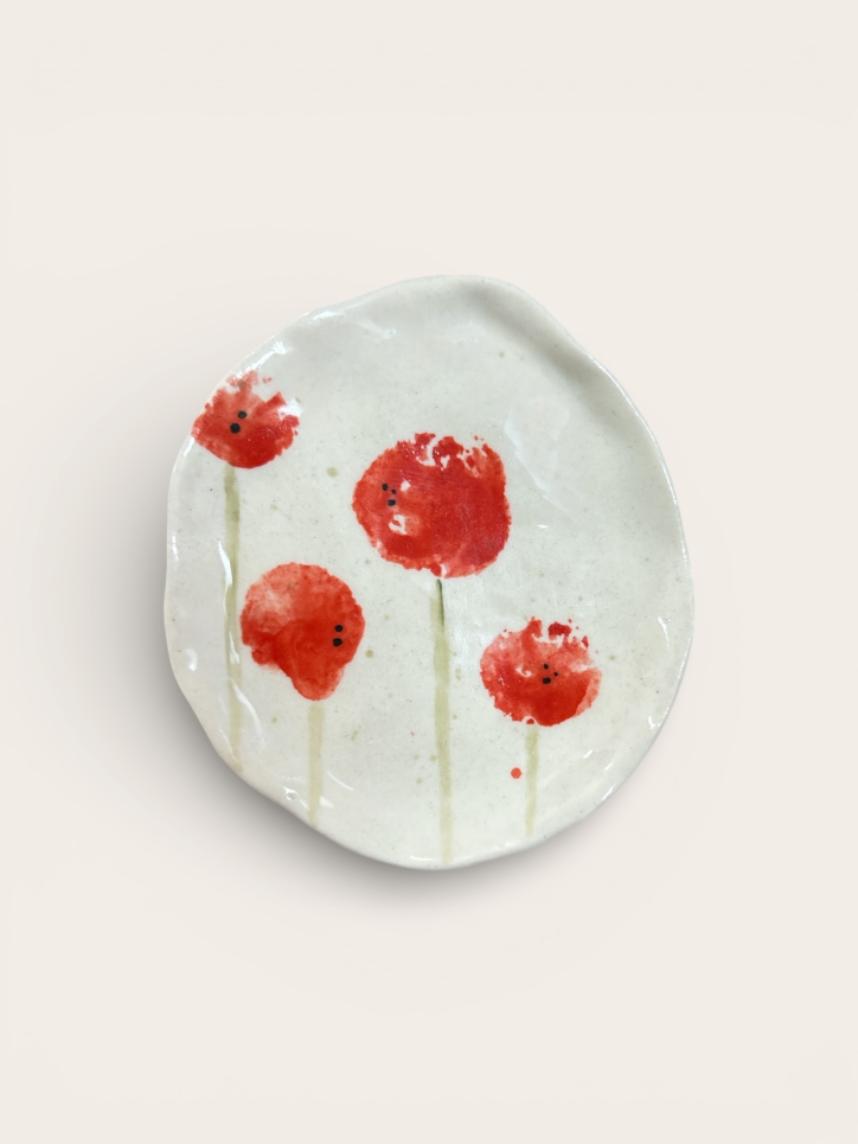 Блюдце ручной работы "Красные маки", 8 см, выполнено из керамики.