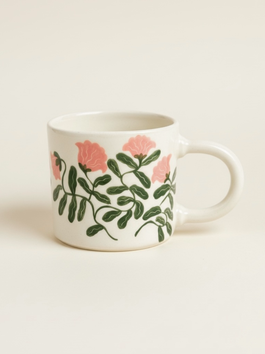 Кружка ручной работы Йеллоускуп «Розовые цветочки», керамика, 250 мл