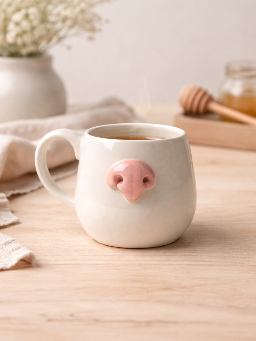 Керамическая кружка ручной работы от бренда An2K с розовым носиком объемом 180 мл.