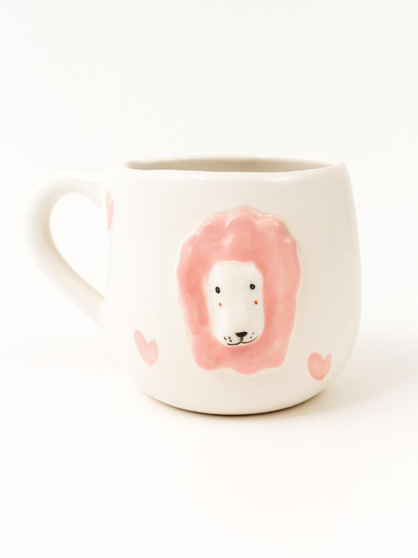 Кружка ручной работы с фигуркой «Лев», с розовыми сердечками, полуфарфор, 250 мл