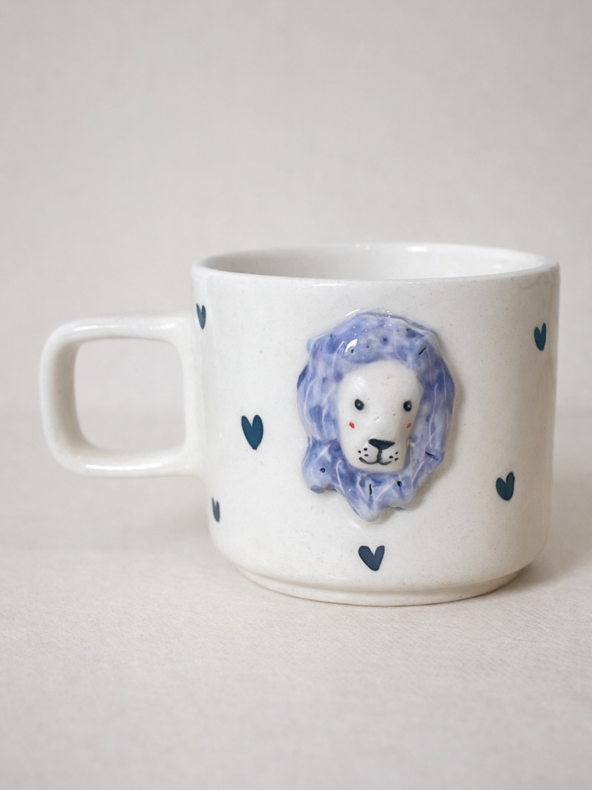Кружка ручной работы с фигуркой «Лев», в сердечко, полуфарфор, 250 мл