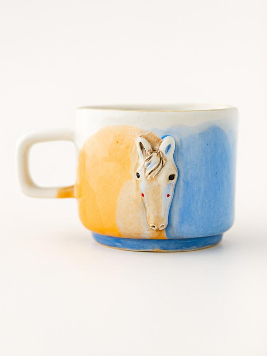 Кружка ручной работы с фигуркой «Лошадка», оранжево-голубая, полуфарфор, 250 мл