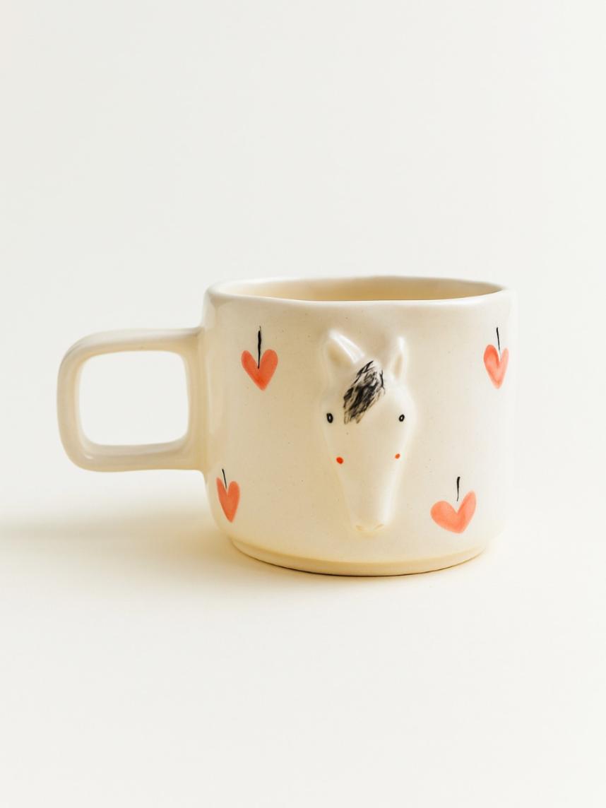 Кружка ручной работы с фигуркой Лошадка с розовыми яблочками, полуфарфор, 250 мл