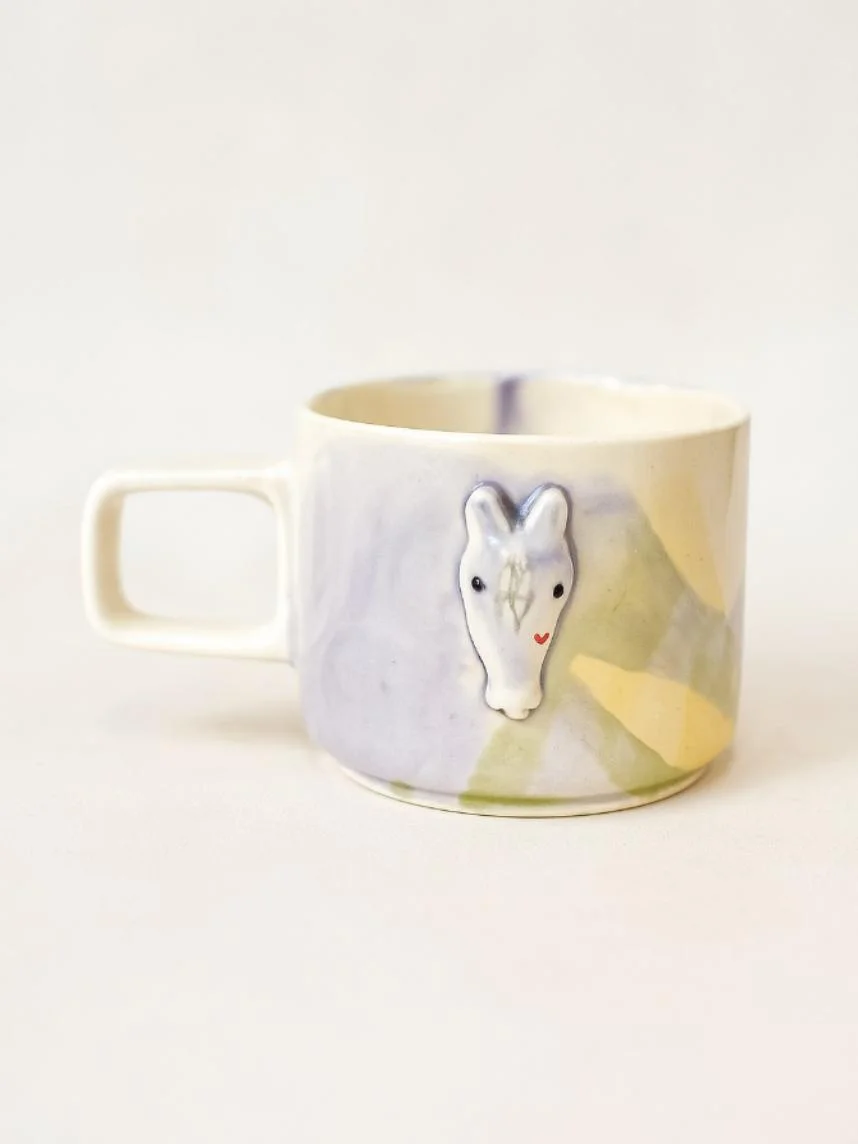 Кружка ручной работы Мария Гордеева с фигуркой «Лошадка», жёлто-голубая, полуфарфор, 250 мл
