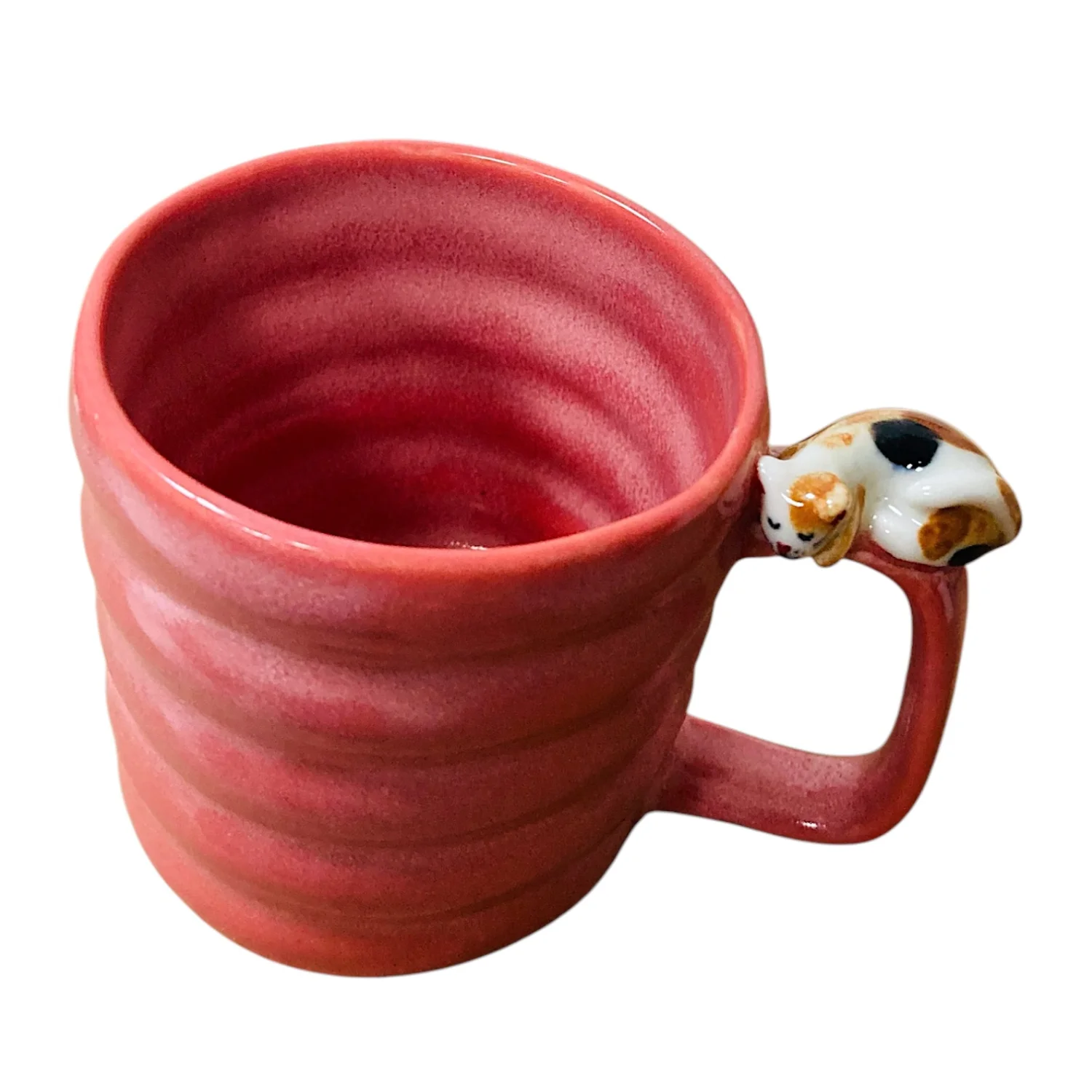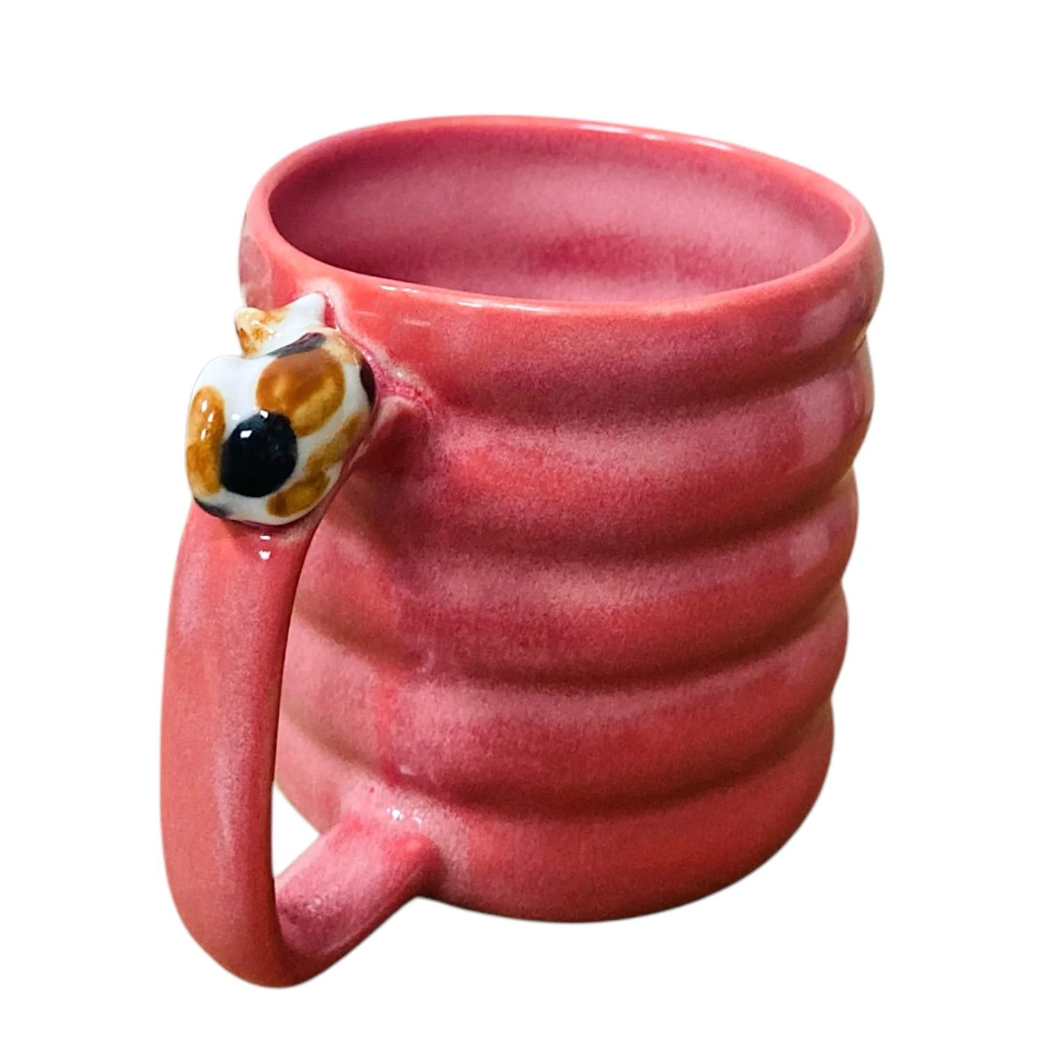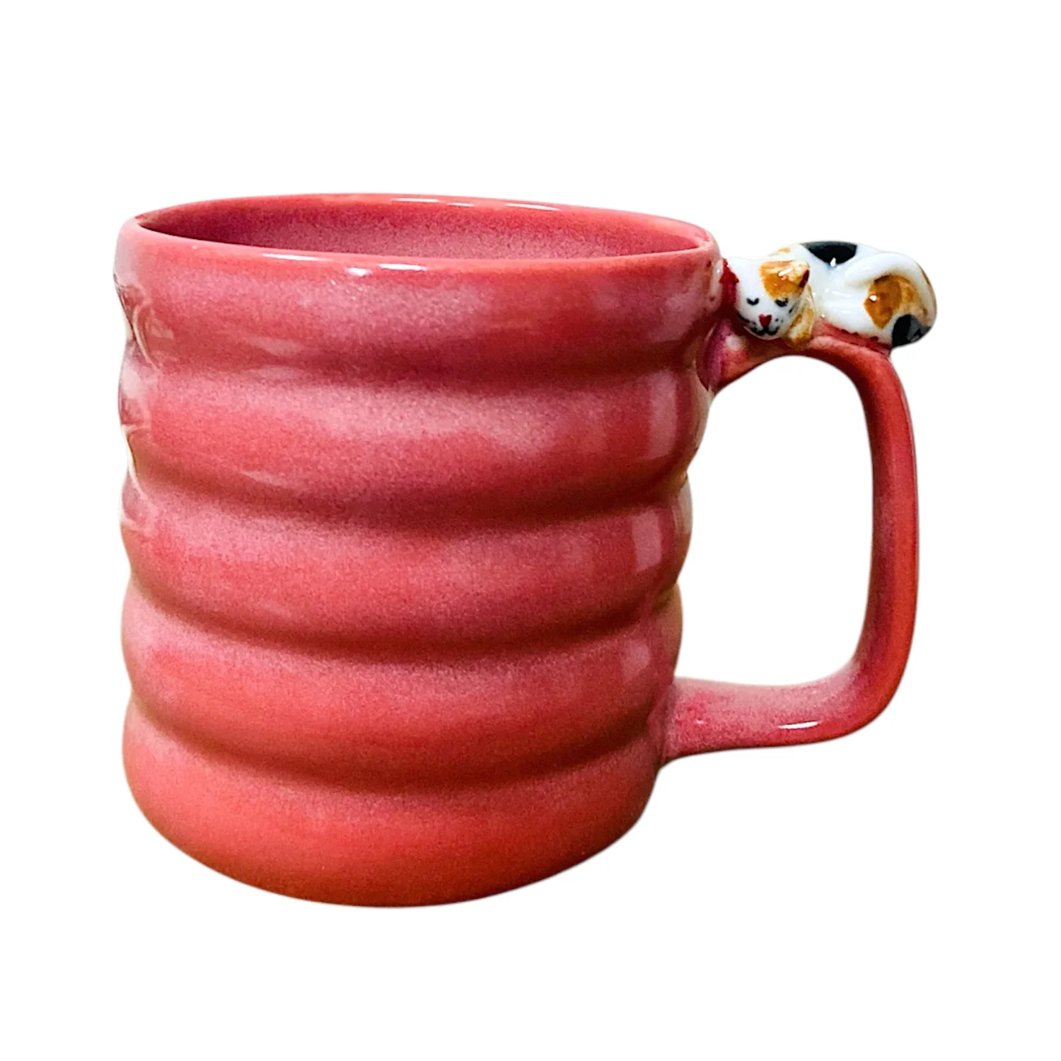 Кружка ручной работы Маковка с фигуркой на ручке «Котик», розовая, 180 мл