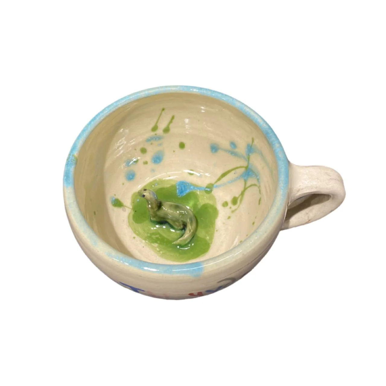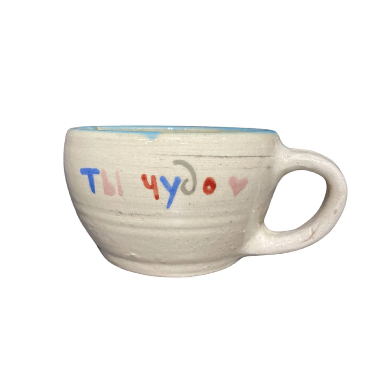 Кружка ручной работы с милой надписью и динозавриком на дне от мастерской Organica из Санкт-Петербурга является уникальным и оригинальным предметом, созданным с любовью и вниманием к деталям.