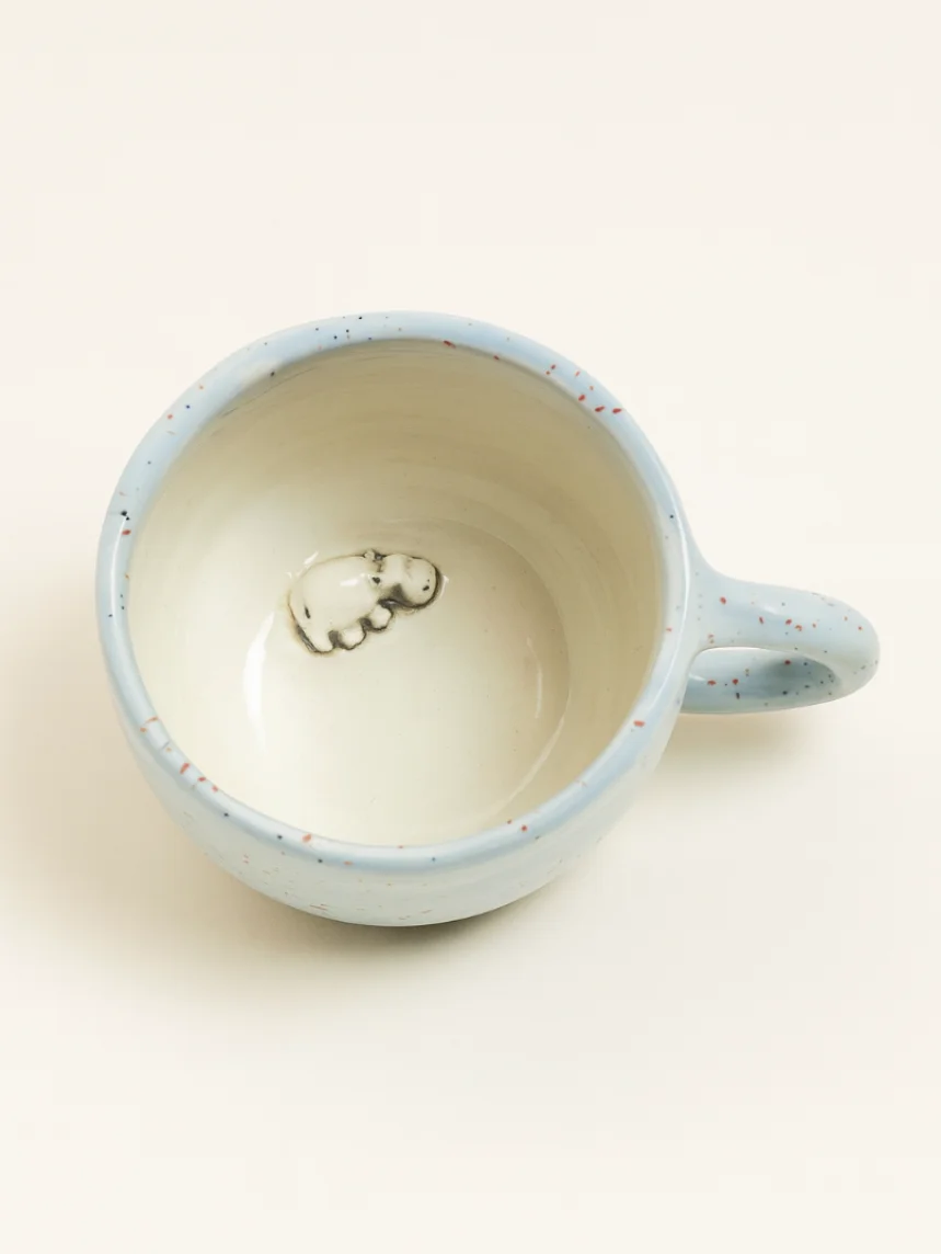 Керамическая кружка ручной работы с фигуркой внутри Бегемотик. Производитель - московский бренд «Mama Cherepaha».