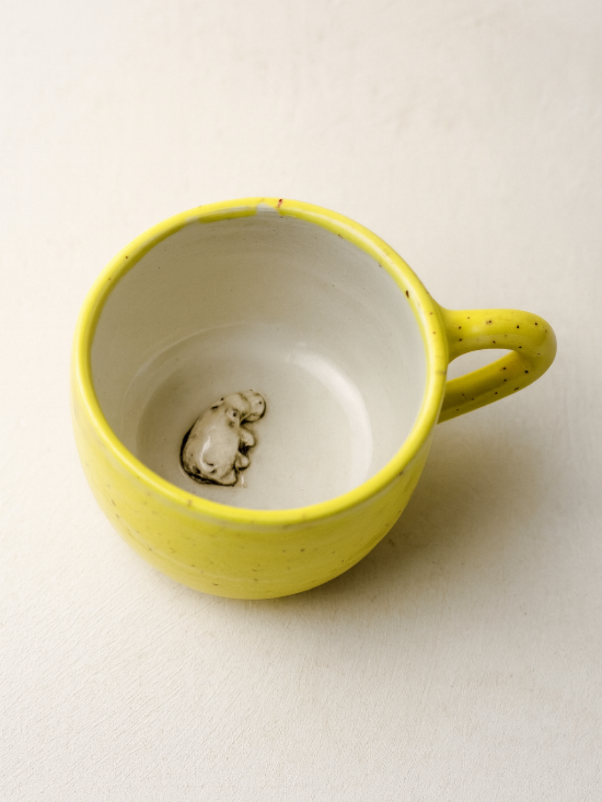 Кружка ручной работы с фигуркой внутри Бегемотик, жёлтая, керамика, 400мл