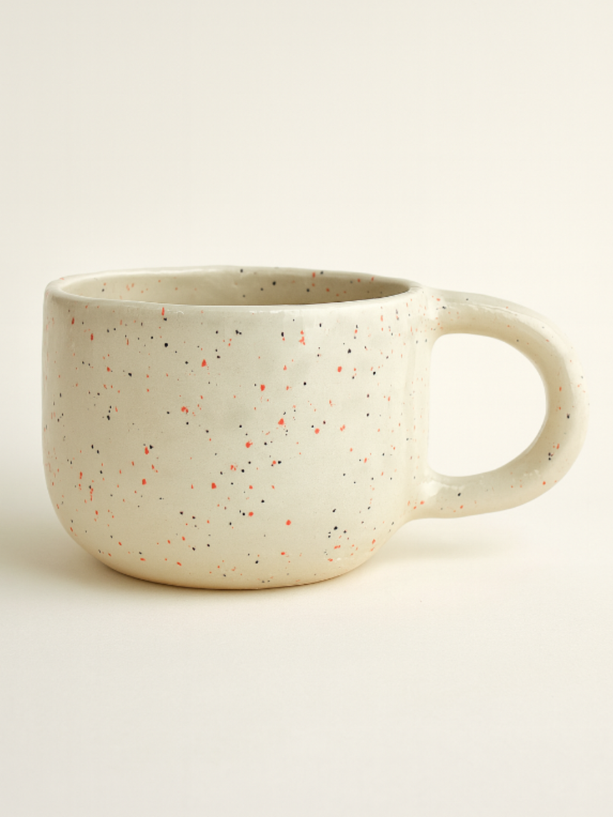 Кружка ручной работы с фигуркой внутри Котик, белая в точку, керамика, 400мл