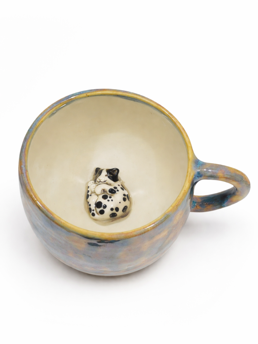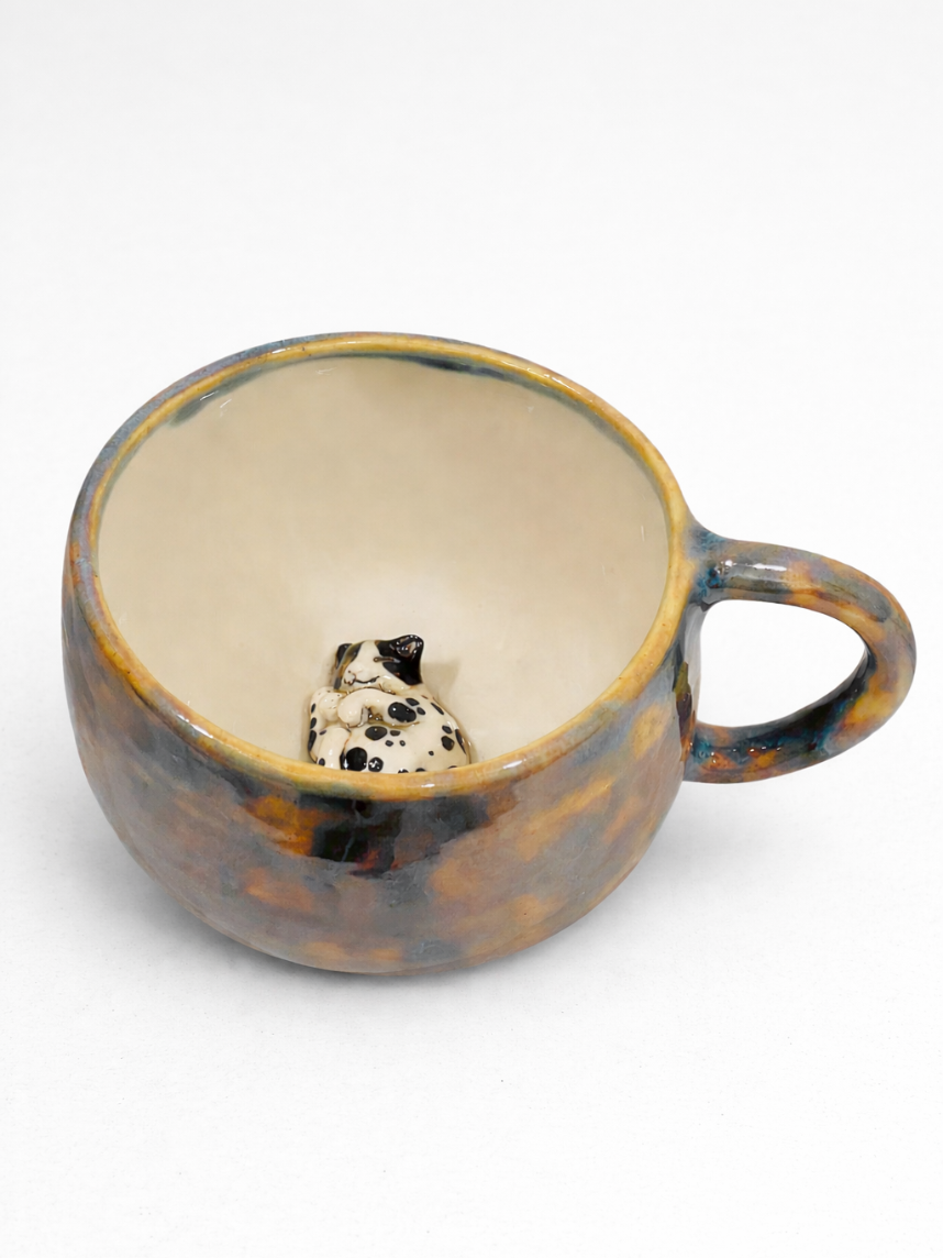 Керамическая кружка ручной работы с фигуркой внутри Котик. Производитель - московский бренд «Mama Cherepaha».