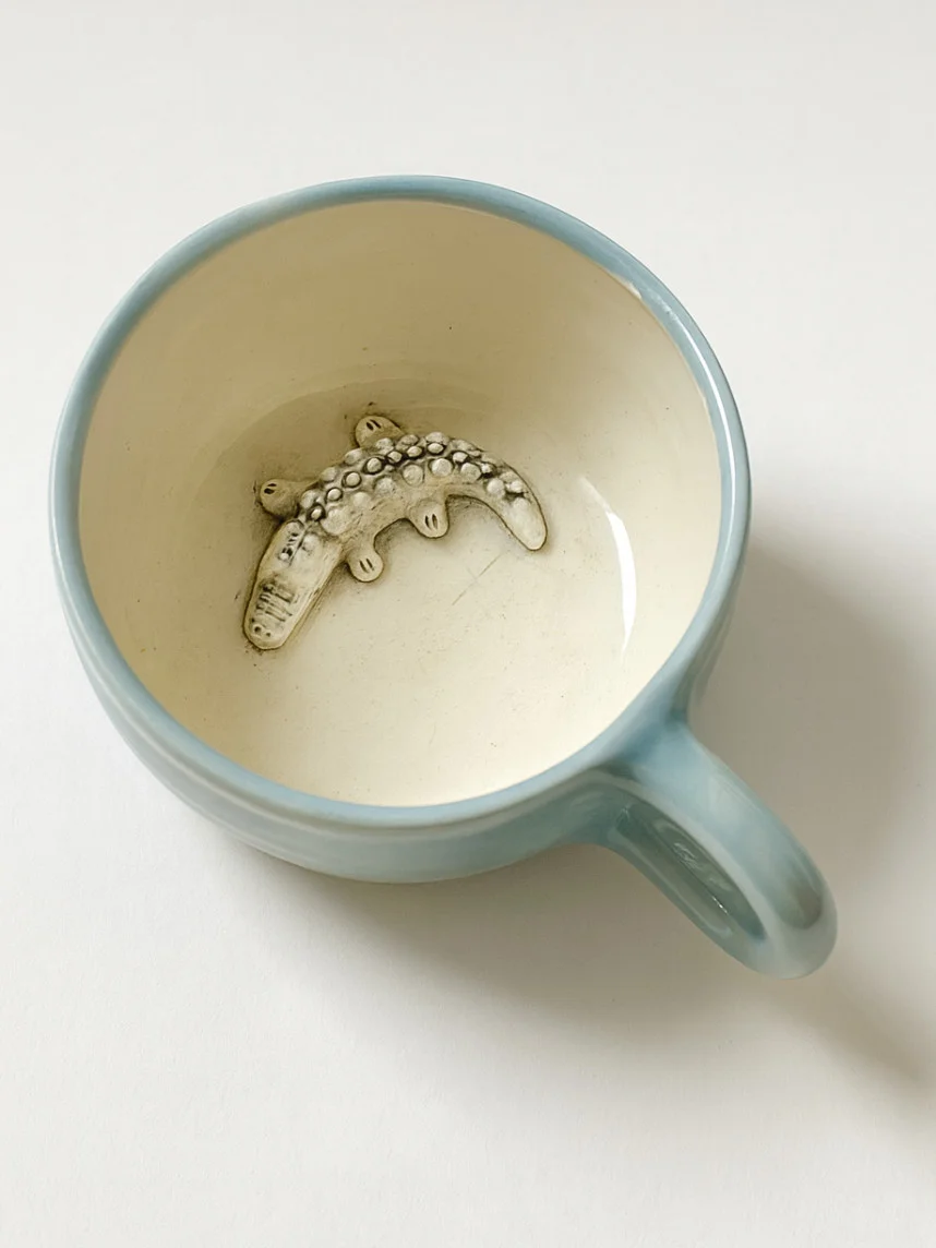 Керамическая кружка ручной работы с фигуркой внутри «Крокодил». Производитель - московский бренд «Mama Cherepaha».