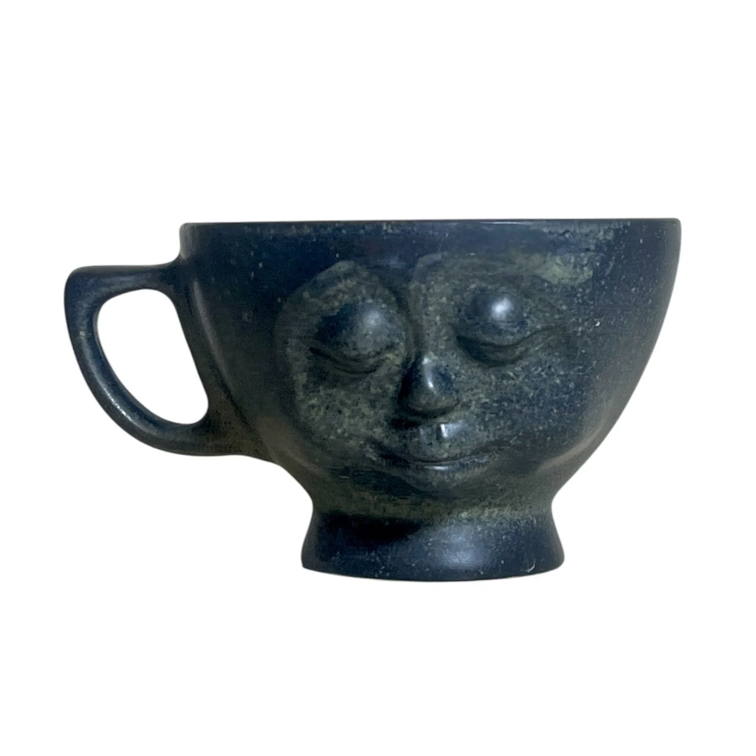 Кружка ручной работы Ручная глина с личиком, чёрная, керамика, 350 мл