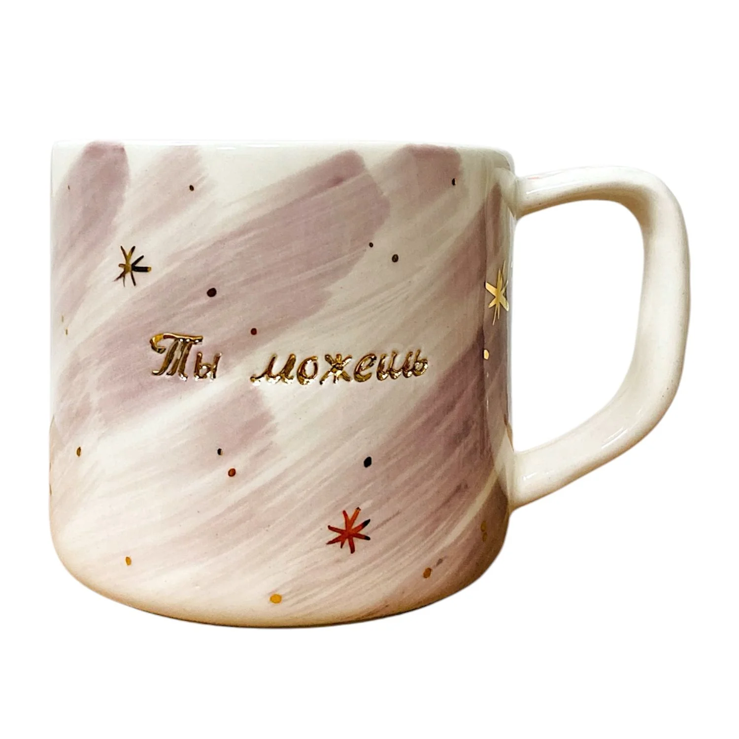 Элегантная фарфоровая кружка с надписью и разводами «Ты можешь».  Ручная работа от петербургской керамистки Анны Герман.
