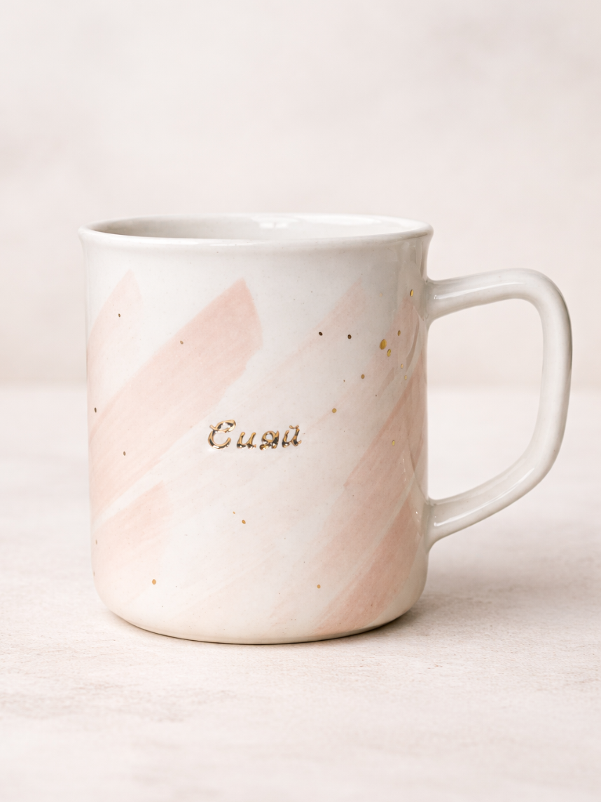 Кружка ручной работы Анна Герман с надписью и звёздами «Сияй», бело-розовая, фарфор, 450 мл