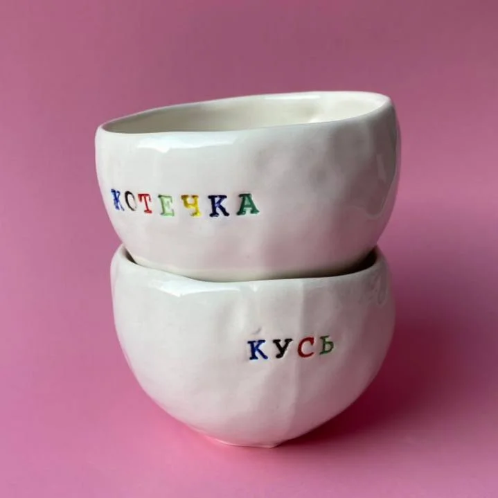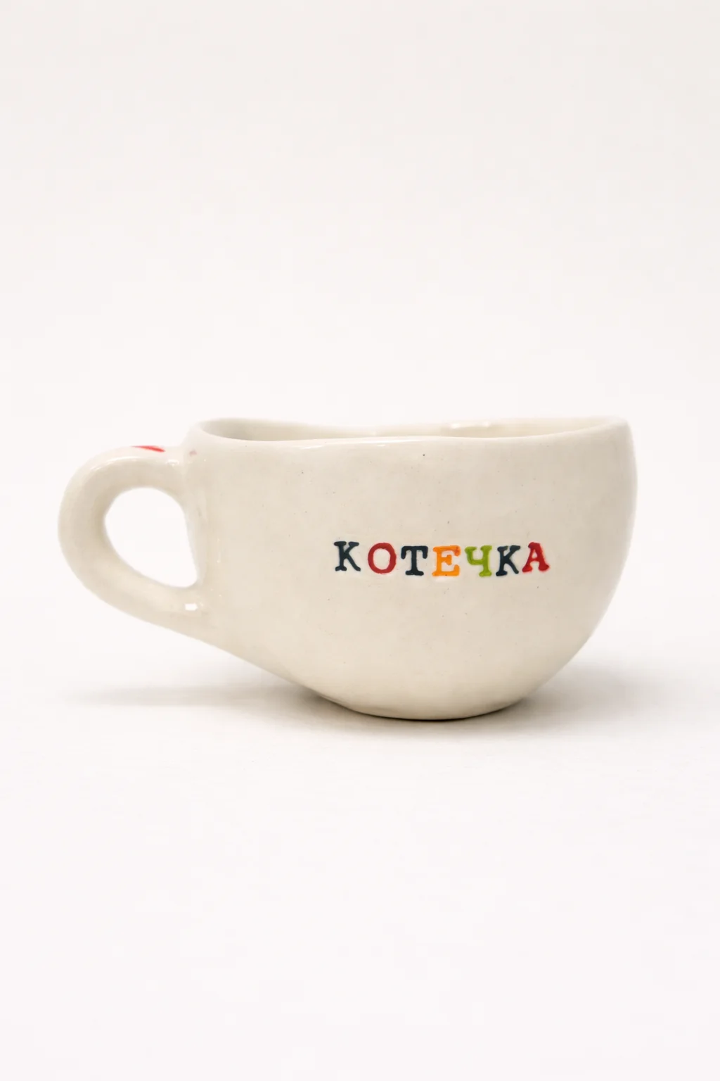 Керамическая кружка ручной работы с надписью «Котечка». Производитель - петербургская керамистка Аня Мурмыло (Keramurrr).