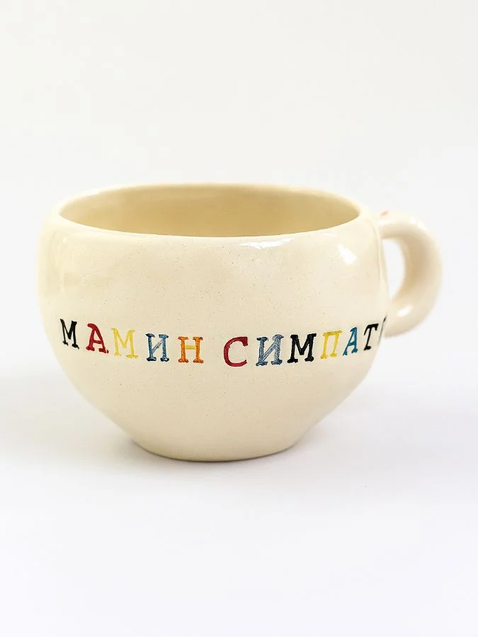 Керамическая кружка ручной работы с надписью «Мамин симпатяга». Производитель - петербургская керамистка Аня Мурмыло (Keramurrr).