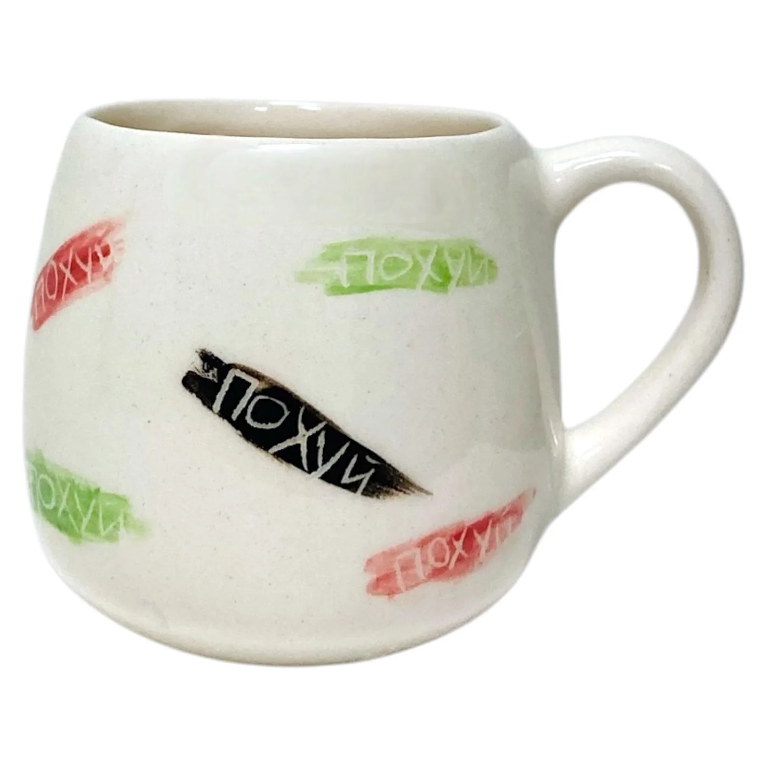 Кружка ручной работы Катя Вебер с надписью «П***й», разноцветная, керамика, 250 мл