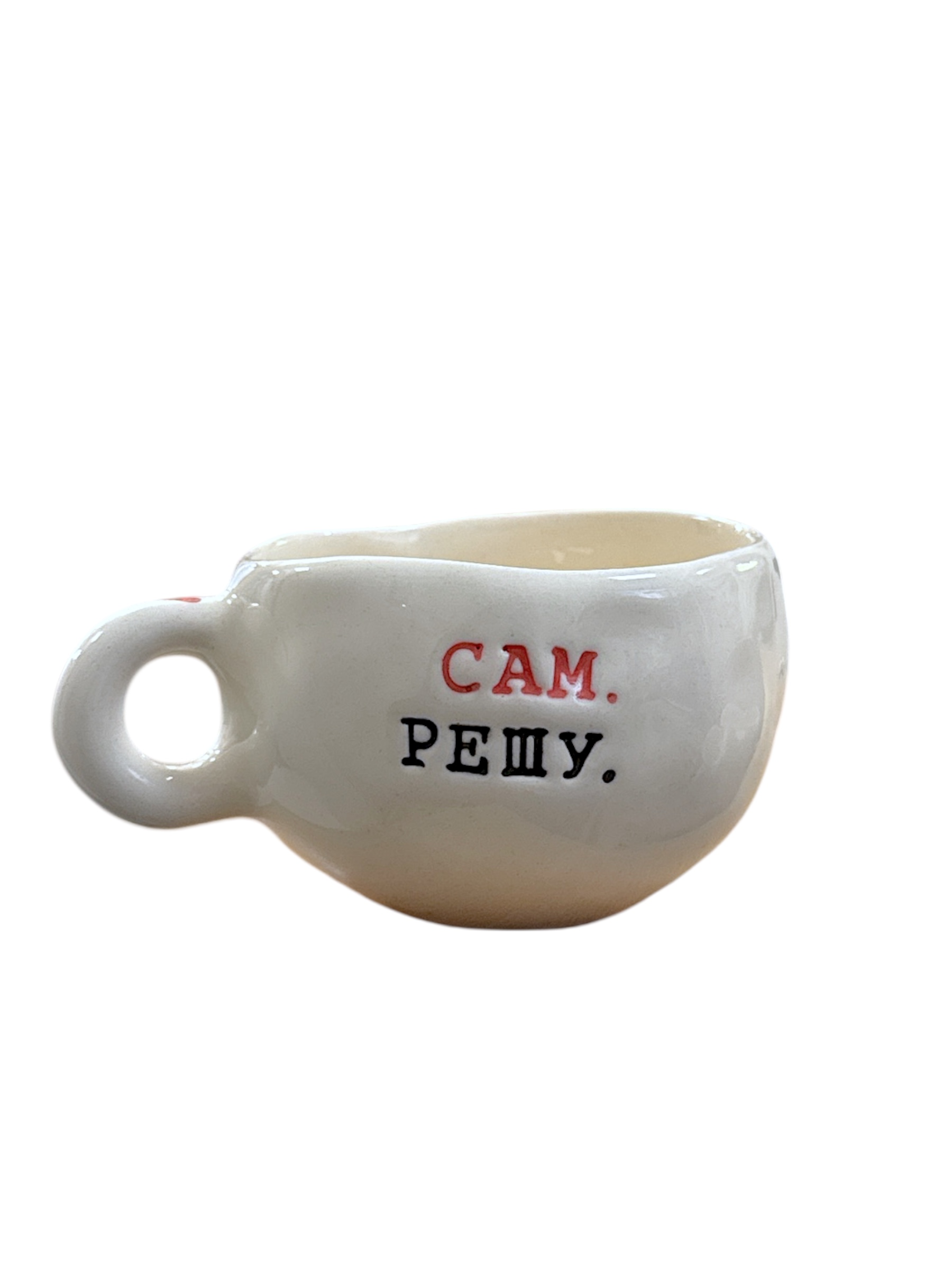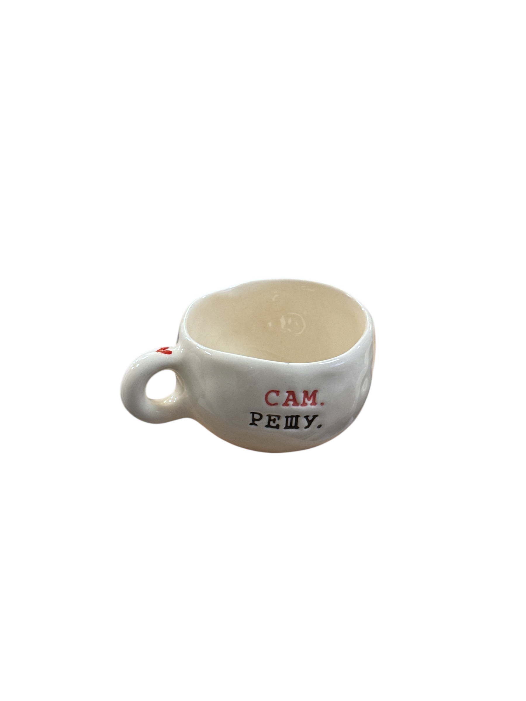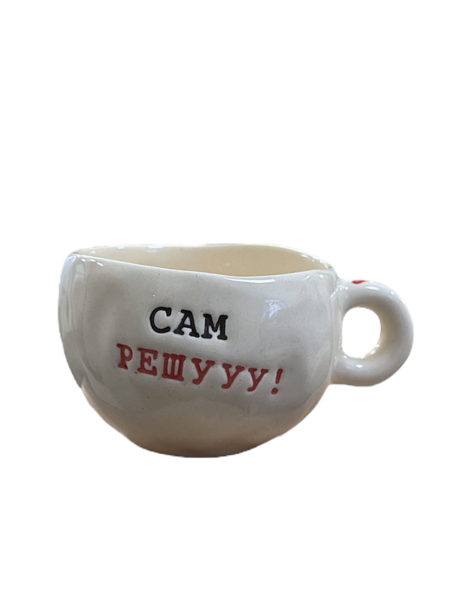 Керамическая кружка ручной работы с надписью «Сам решууу!». Производитель - петербургская керамистка Аня Мурмыло (Keramurrr).