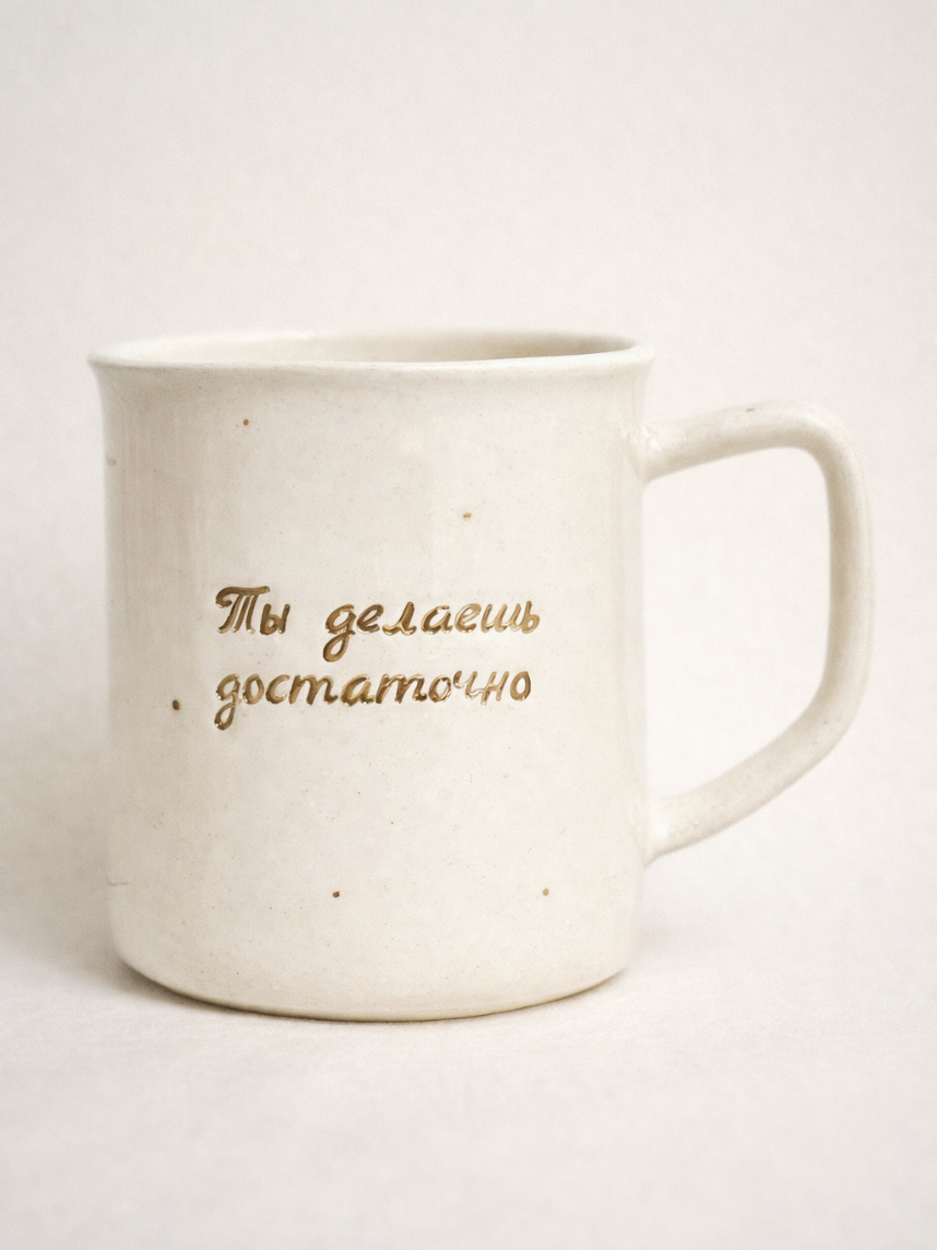 Элегантная фарфоровая кружка с надписью «Ты делаешь достаточно».  Ручная работа от петербургской керамистки Анны Герман.