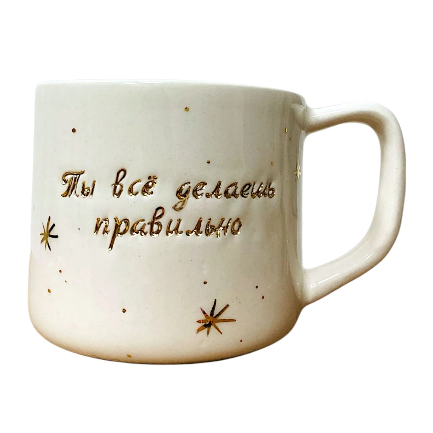 Элегантная фарфоровая кружка с надписью «Ты всё делаешь правильно». Ручная работа от петербургской керамистки Анны Герман.