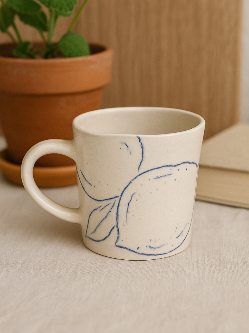 Кружка ручной работы с рисунком «Лимон», полуфарфор, 370 мл