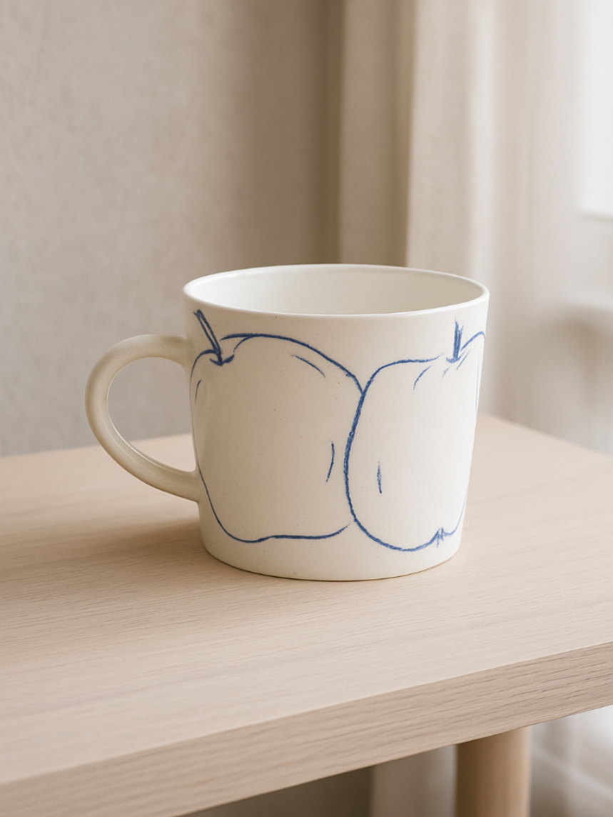 Кружка ручной работы с рисунком «Яблоко», полуфарфор, 370 мл