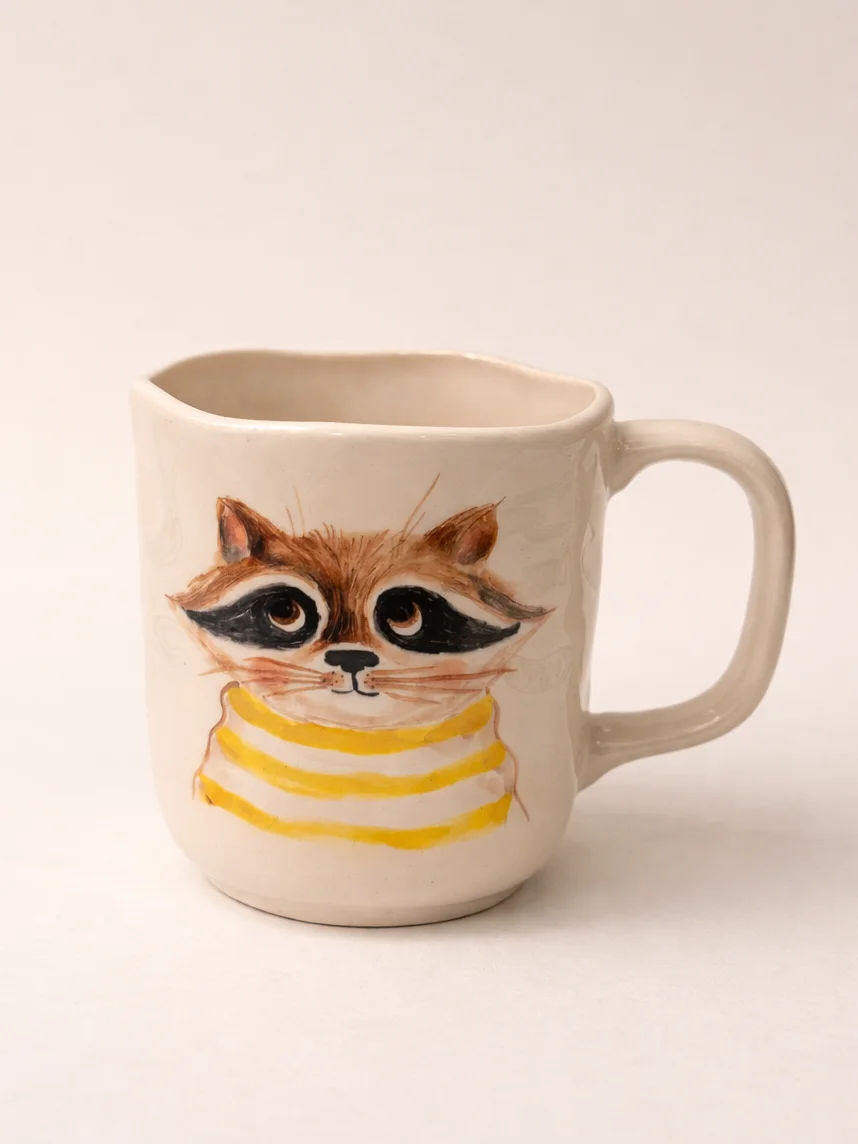 Кружка ручной работы Ким керамика с росписью Енотик, фарфор, 350 мл