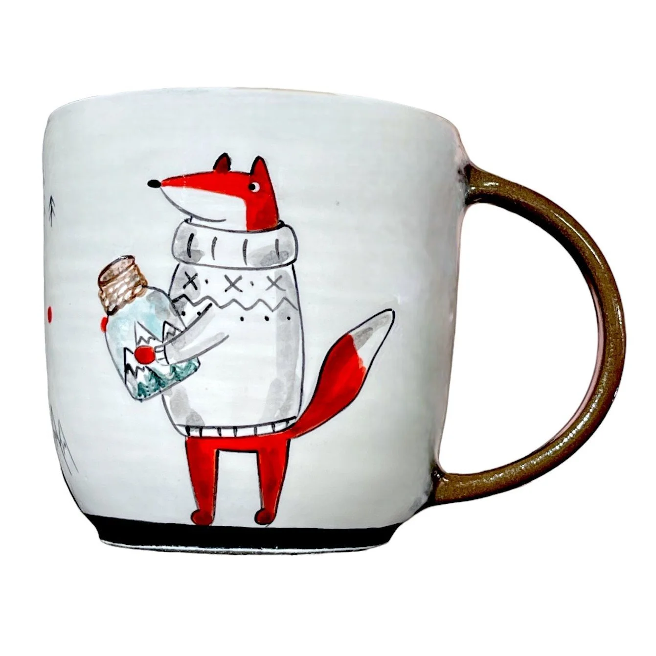 Керамическая кружка ручной работы с росписью «Лис с баночкой воспоминаний». Производитель - керамистка Ситникова Юлия (Kim ceramics).