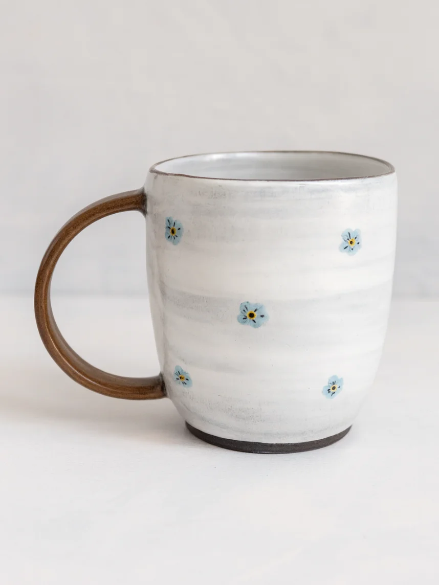 Керамическая кружка ручной работы с росписью «Лис с белыми цветами». Производитель - керамистка Ситникова Юлия (Kim ceramics).