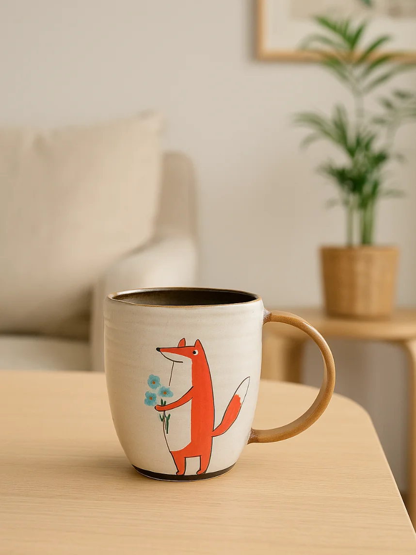 Кружка ручной работы Ким керамика с росписью Лис с цветами, керамика, 450 мл