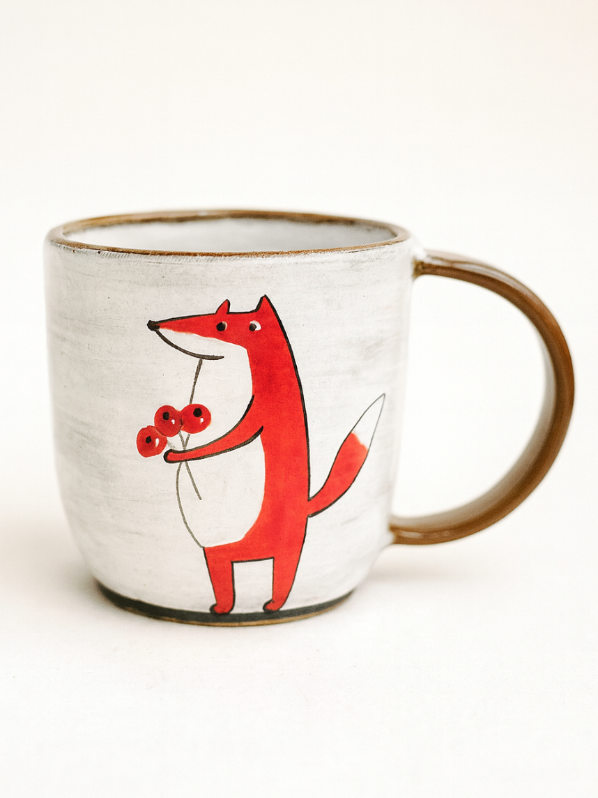 Кружка ручной работы с росписью Лис с брусникой, керамика, 350 мл