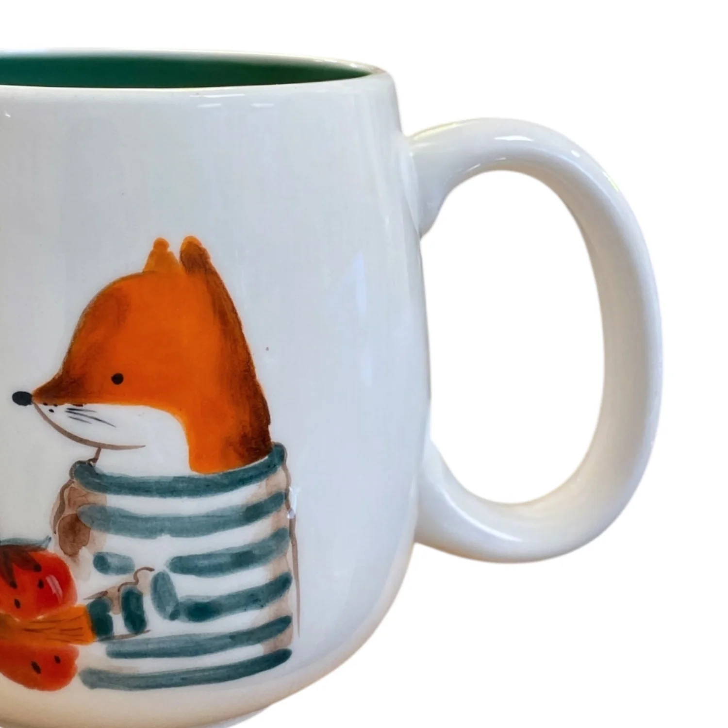 Керамическая кружка ручной работы с росписью «Лис с клубникой». Производитель - керамистка Ситникова Юлия (Kim.ceramics).