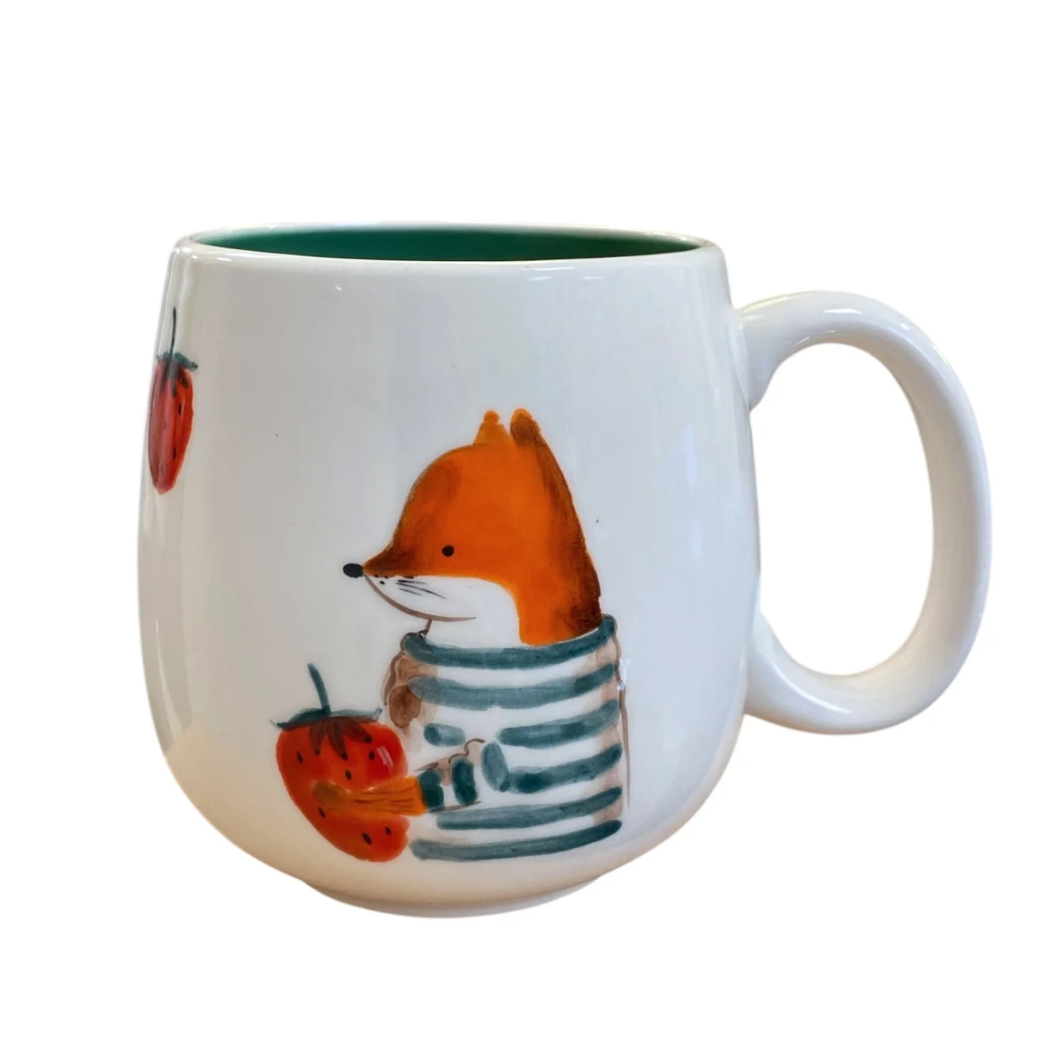 Кружка ручной работы Ким керамика с росписью Лис с клубникой, фарфор, 350 мл