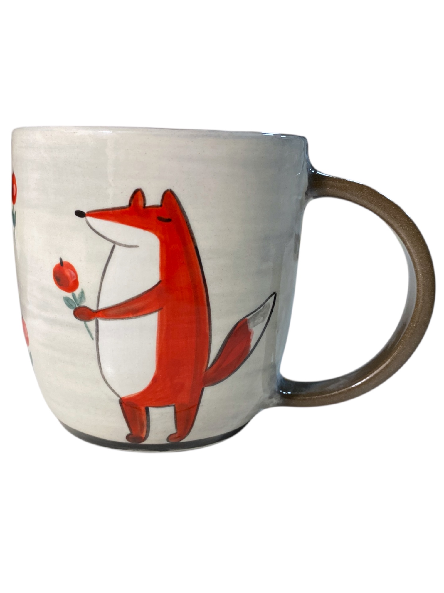 Кружка ручной работы с росписью Лис с клюквой, 450 мл., белая