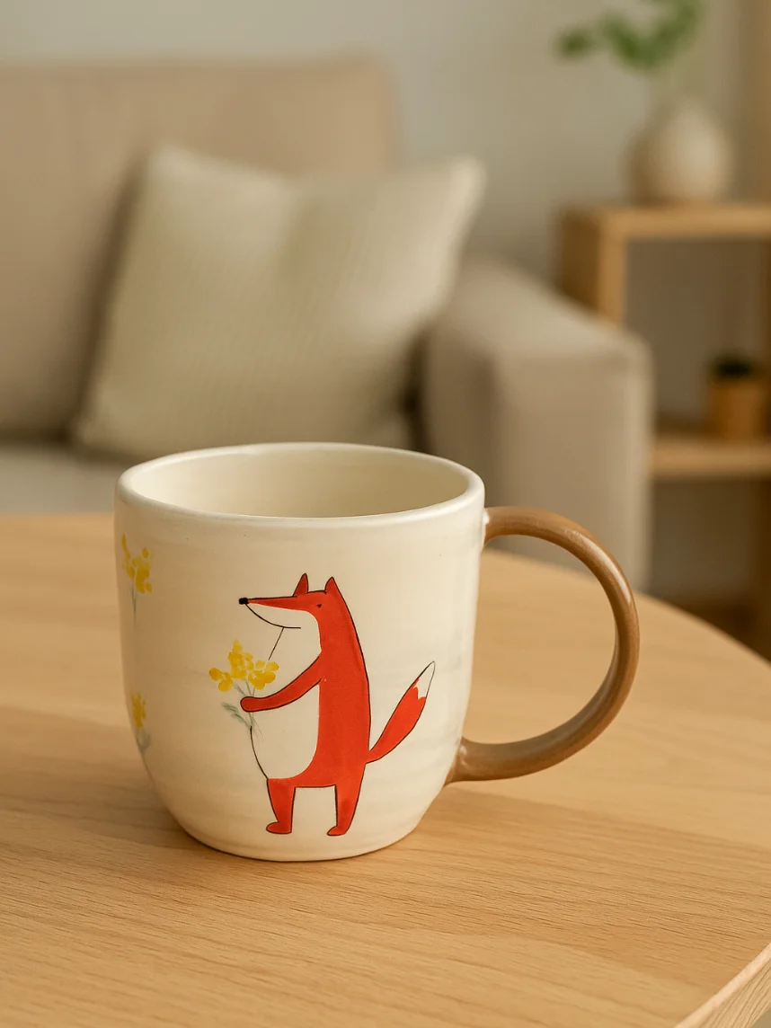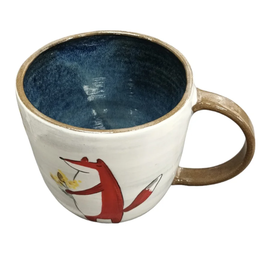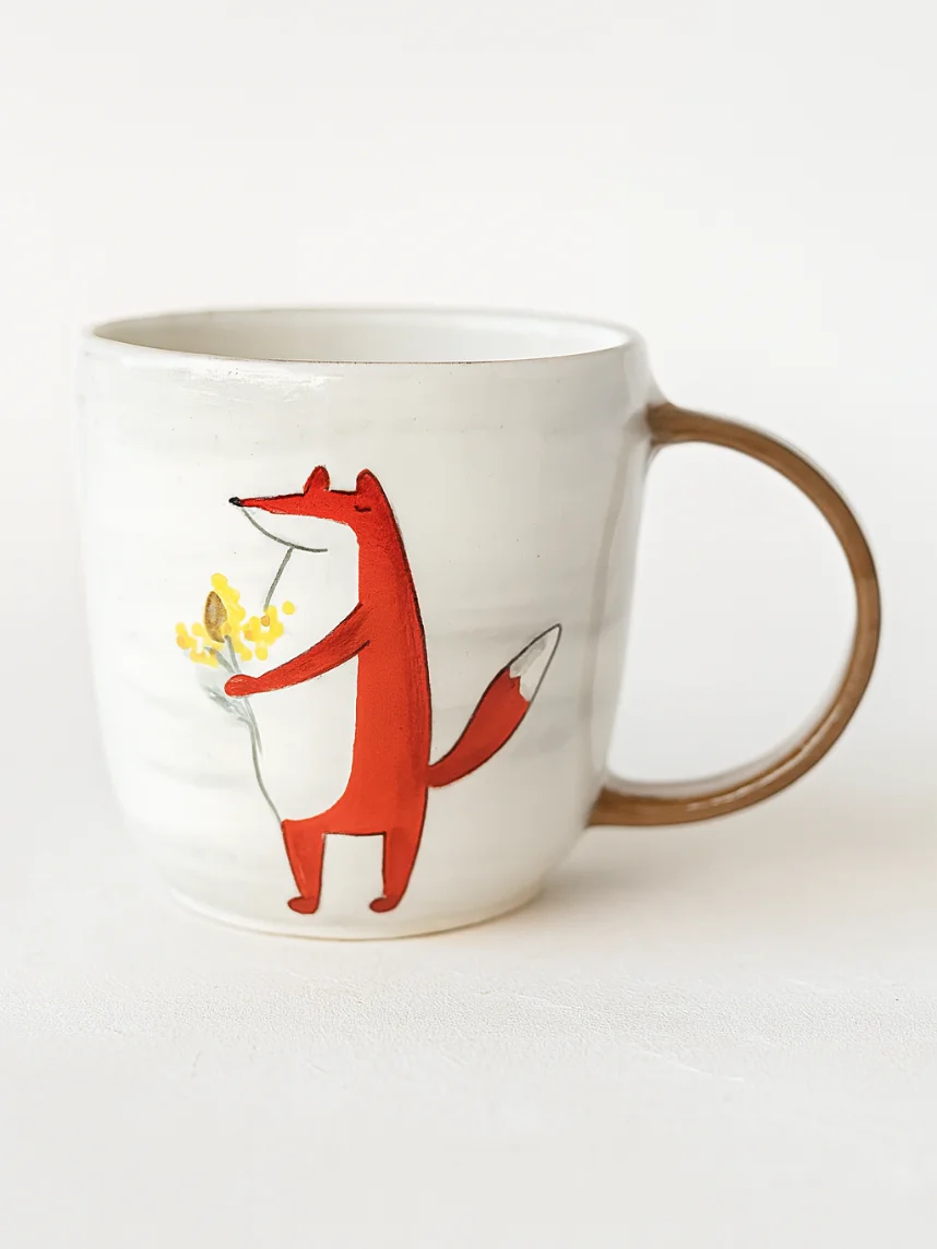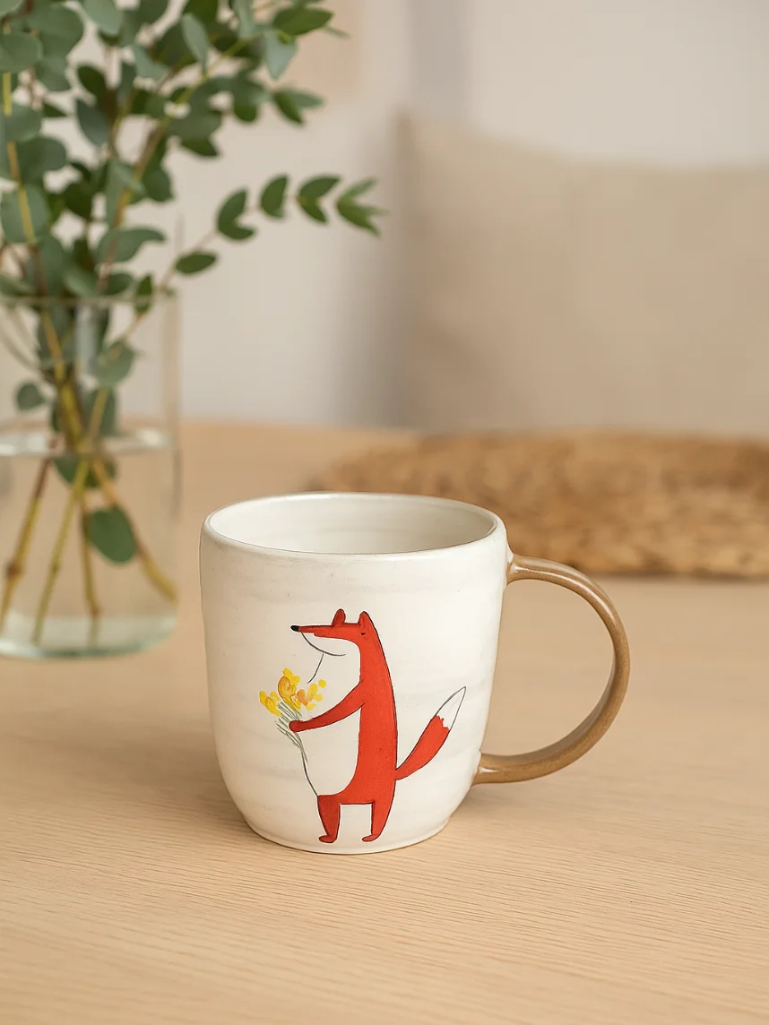 Кружка ручной работы Ким керамика с росписью Лис с мимозой, керамика, 450 мл