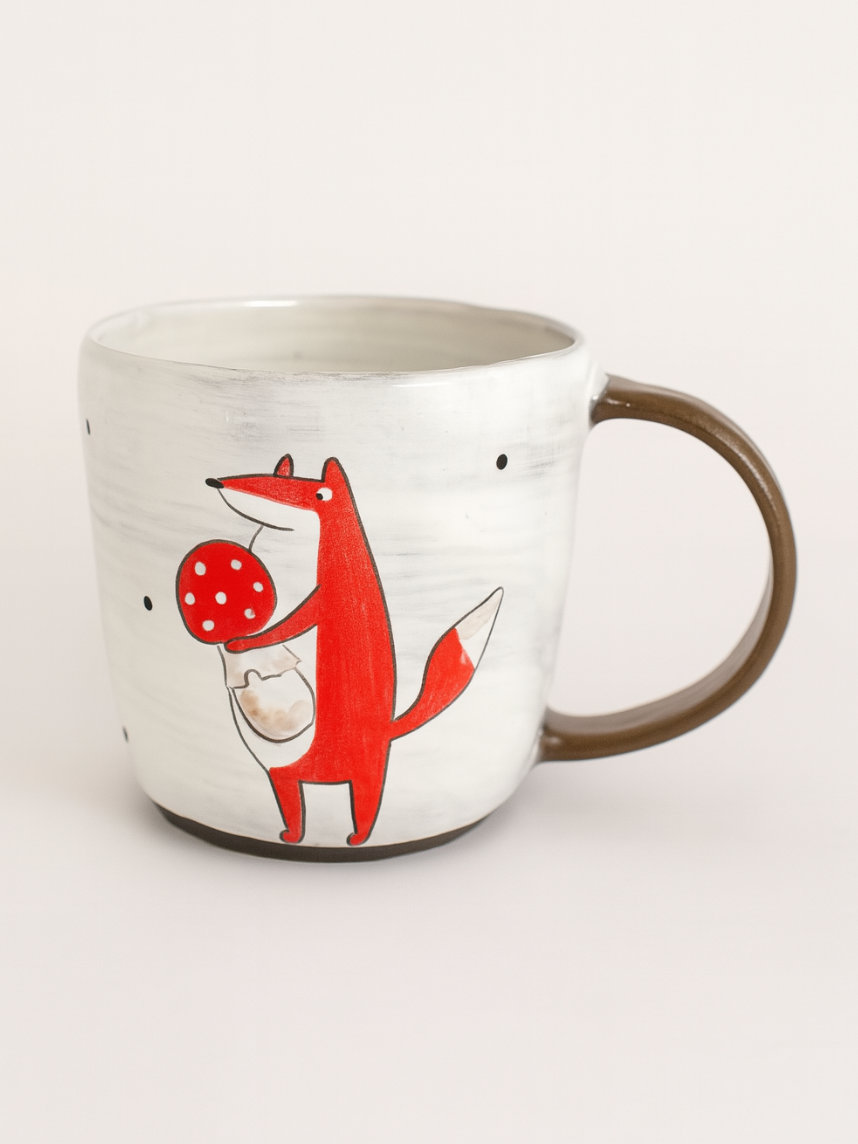 Кружка ручной работы с росписью Лис с мухомором, керамика, 450 мл