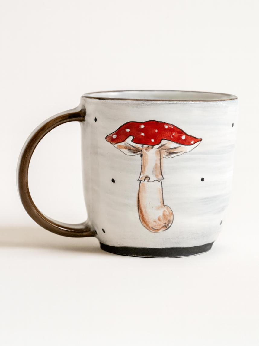Керамическая кружка ручной работы с росписью «Лис с мухомором». Производитель - керамистка Ситникова Юлия (Kim ceramics).