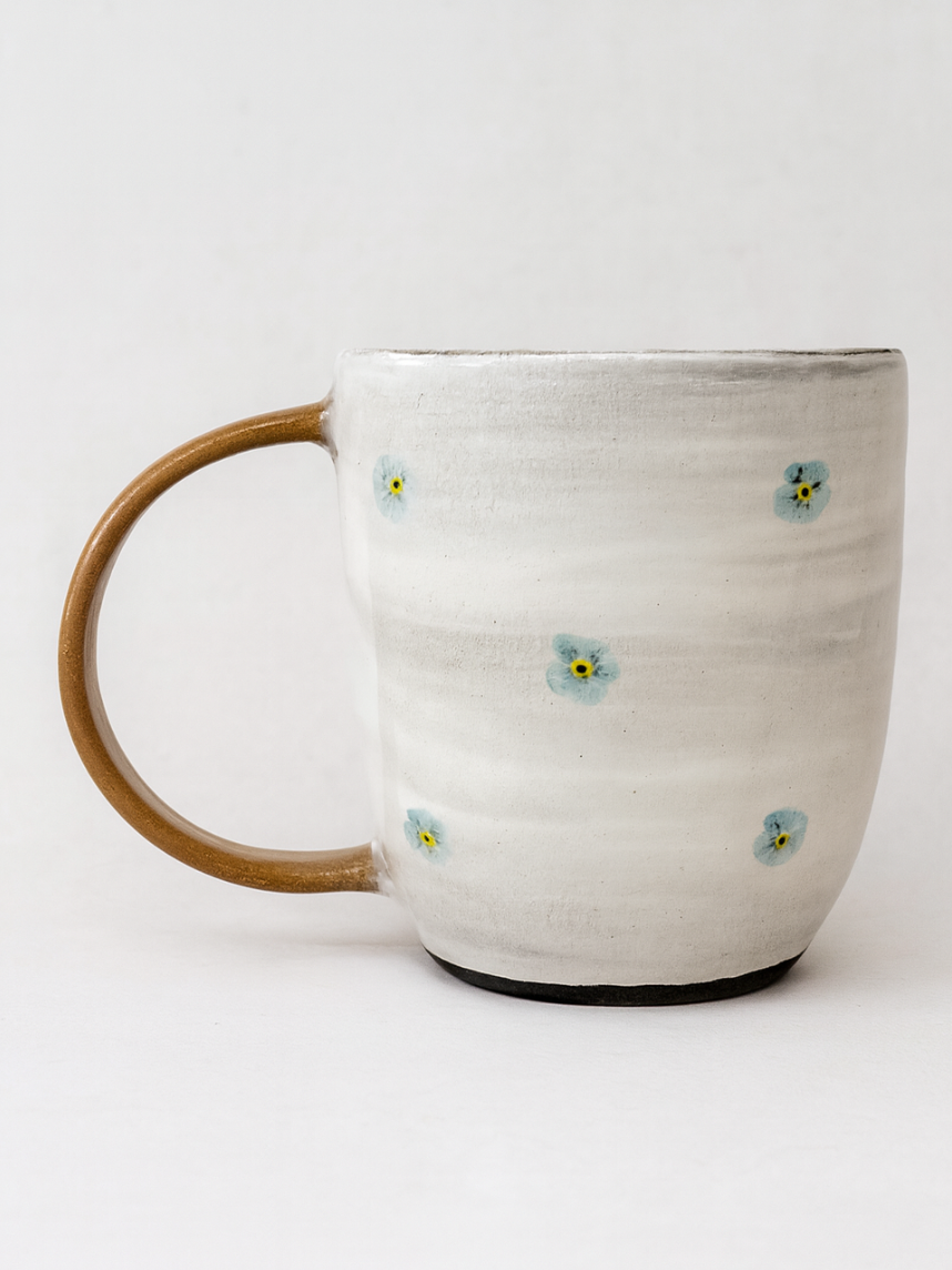 Керамическая кружка ручной работы с росписью «Лис с незабудками». Производитель - керамистка Ситникова Юлия (Kim ceramics).