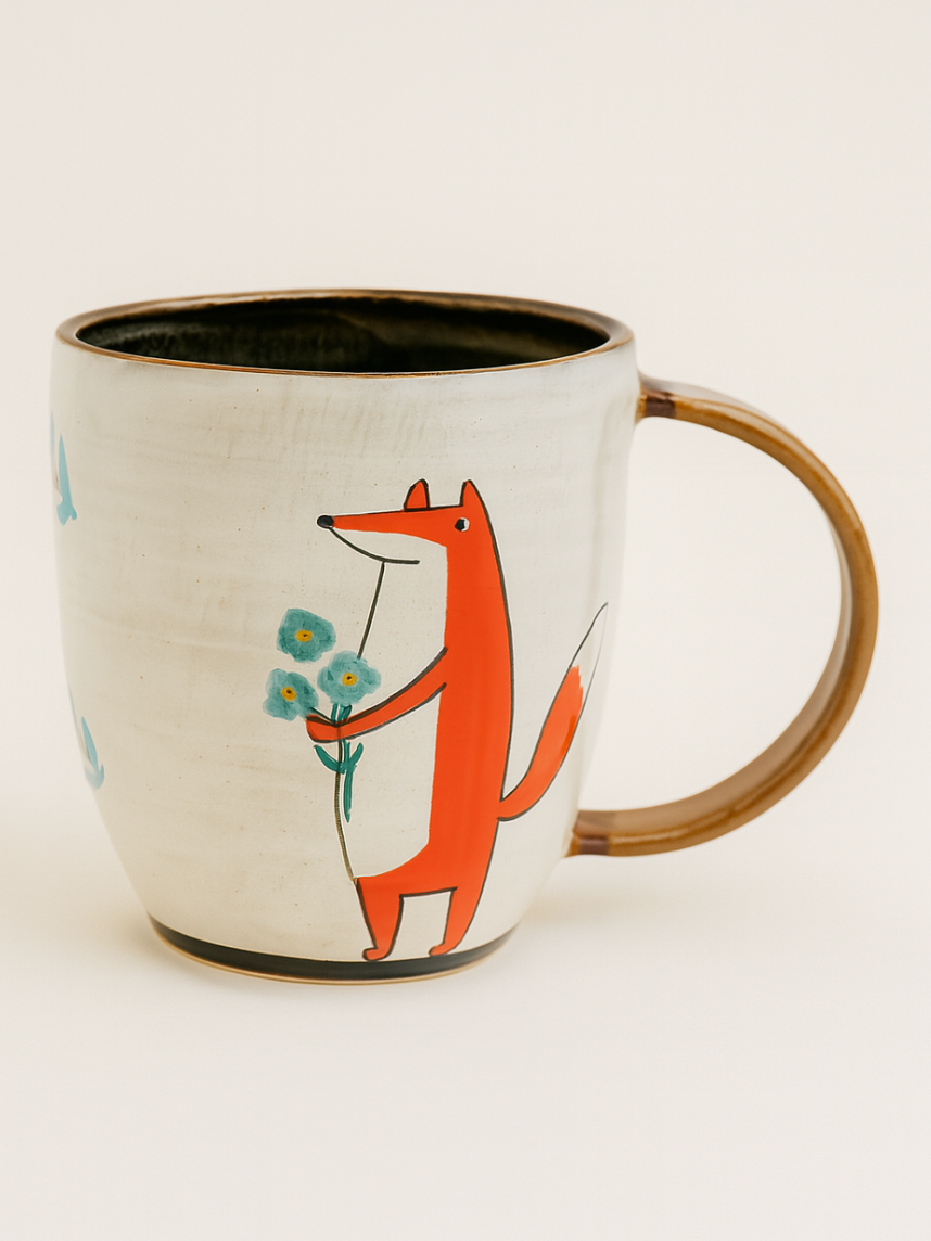 Кружка ручной работы с росписью Лис с незабудками, керамика, 450 мл