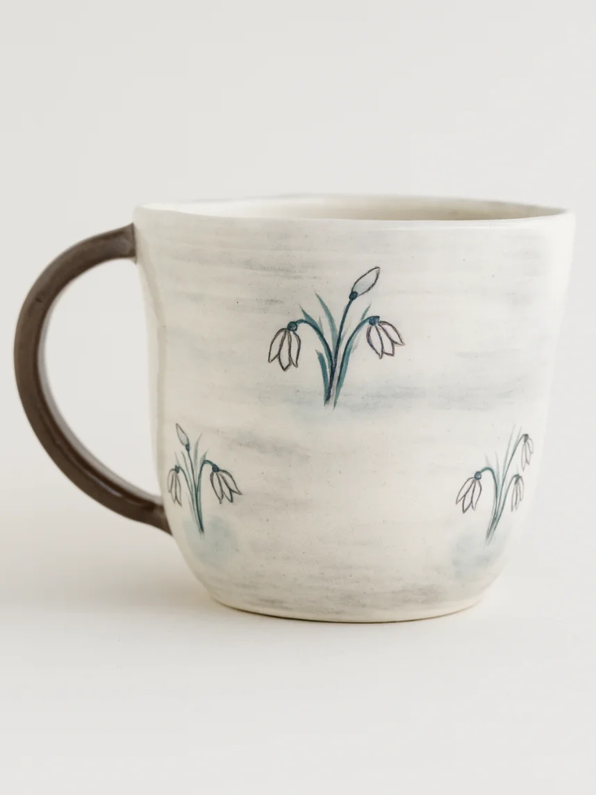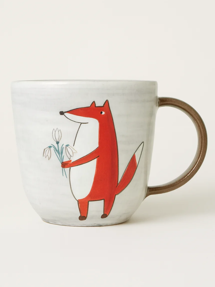 Керамическая кружка ручной работы с росписью «Лис с подснежниками». Производитель - керамистка Ситникова Юлия (Kim ceramics).