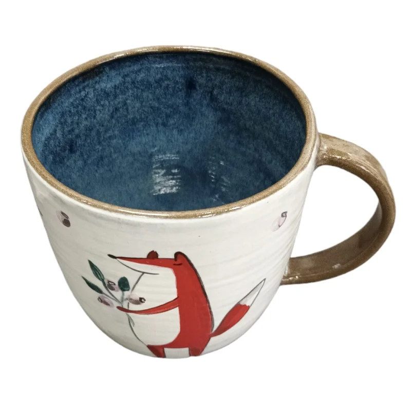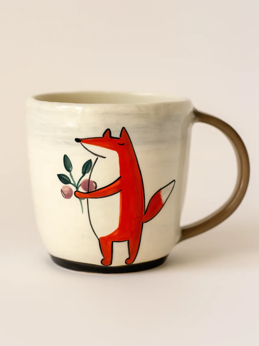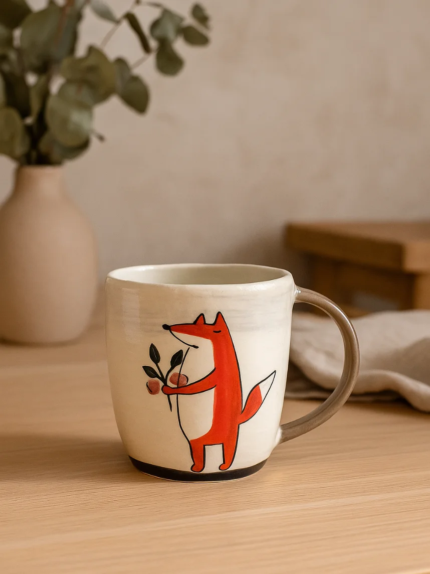 Керамическая кружка ручной работы с росписью «Лис с сиренью». Производитель - керамистка Ситникова Юлия (Kim ceramics).