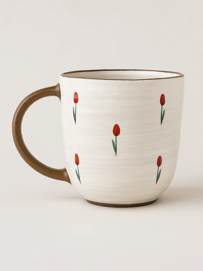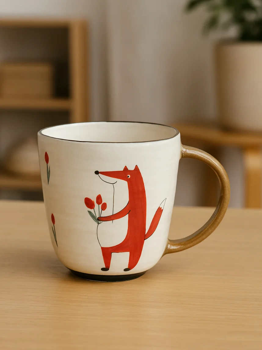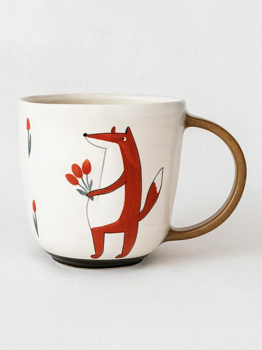 Кружка ручной работы Ким керамика с росписью Лис с тюльпанами, 500 мл., белая