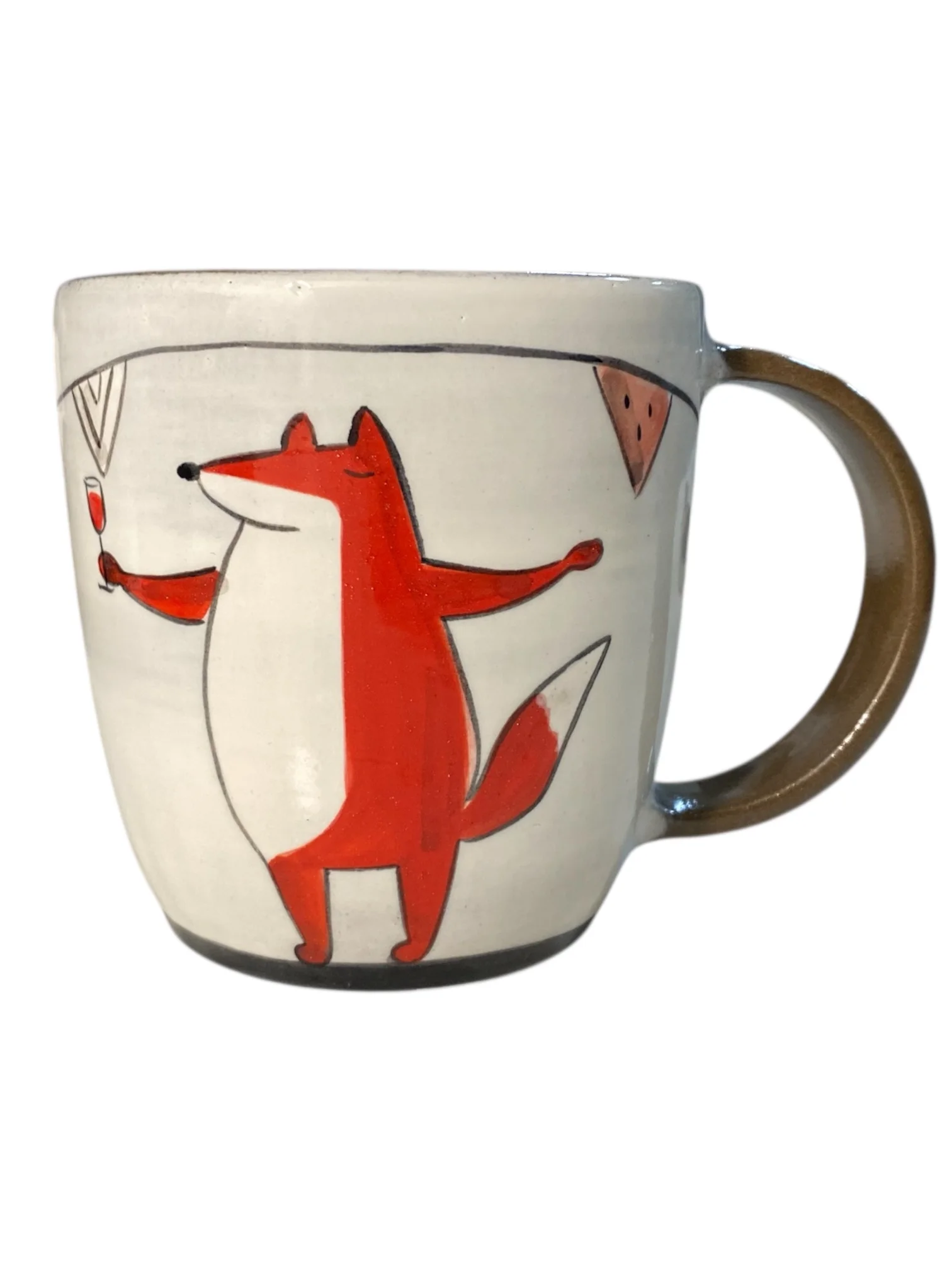 Керамическая кружка ручной работы с росписью «Лис с винишком на празднике». Производитель - керамистка Ситникова Юлия (Kim.ceramics).