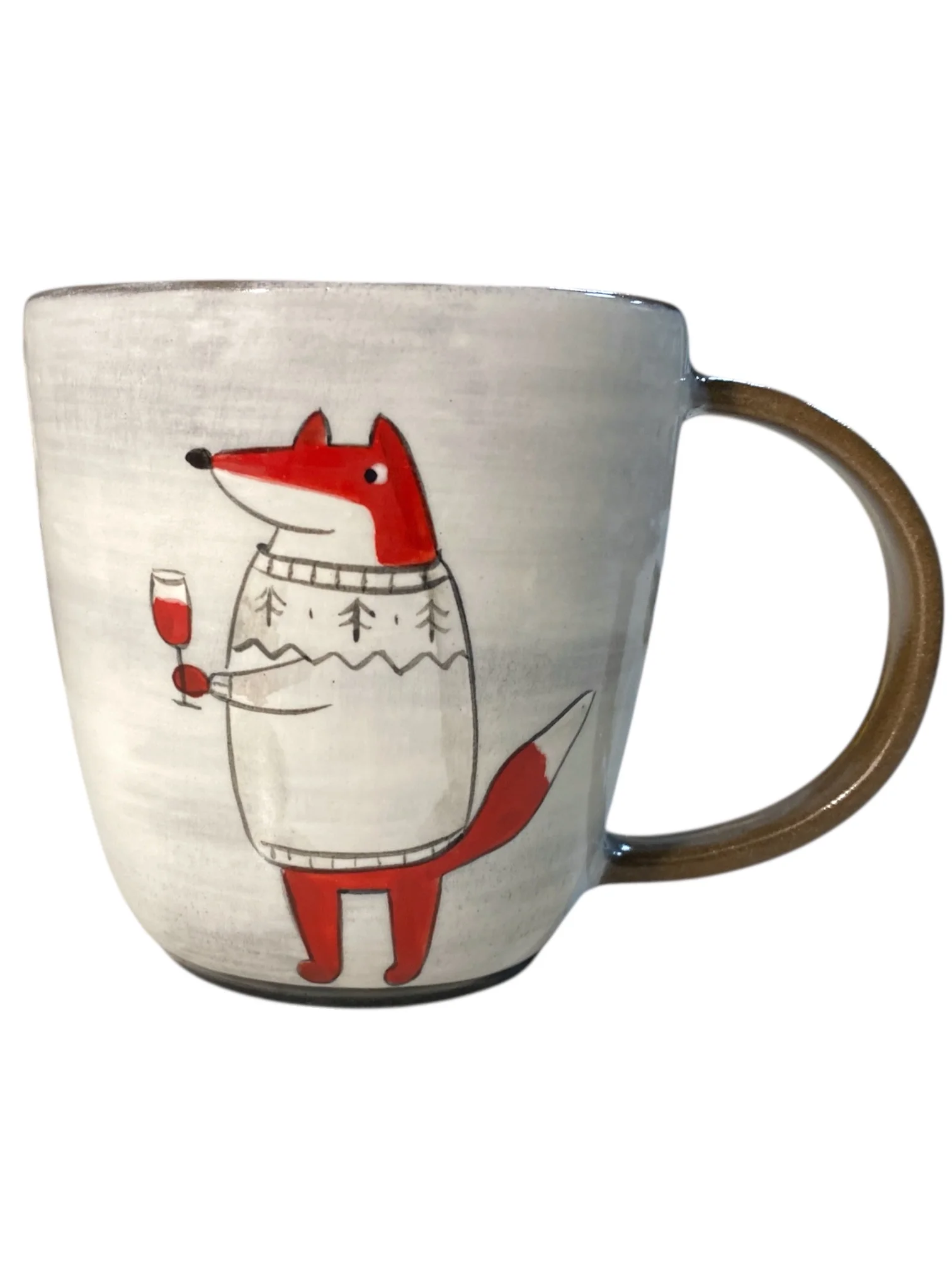 Керамическая кружка ручной работы с росписью «Лис с винишком в свитере». Производитель - керамистка Ситникова Юлия (Kim ceramics).