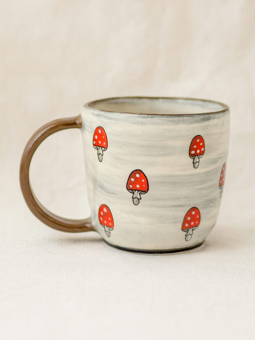 Керамическая кружка ручной работы с росписью «Лис с мухоморами». Производитель - керамистка Ситникова Юлия (Kim ceramics).