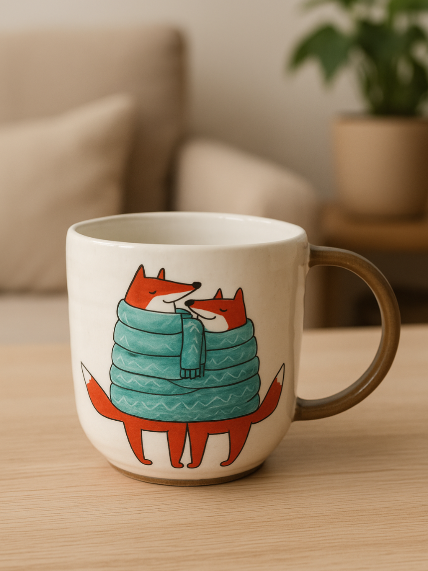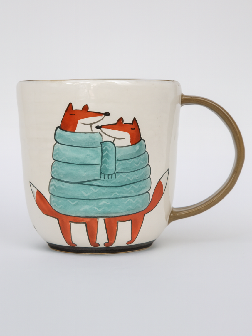 Кружка ручной работы с росписью Лисы в шарфе, 450 мл., белая