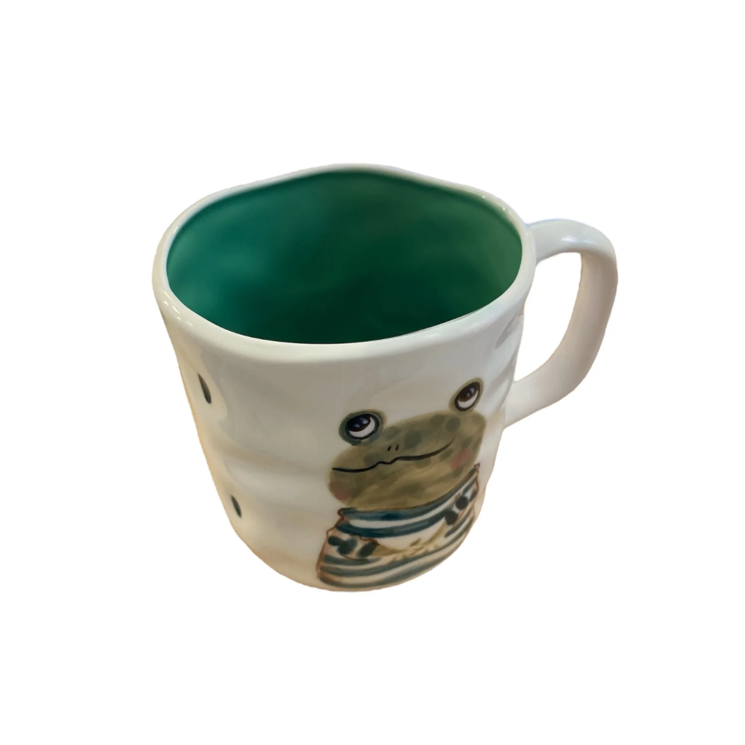 Кружка ручной работы Ким керамика с росписью Лягушка в полосатом свитере, фарфор, 350 мл