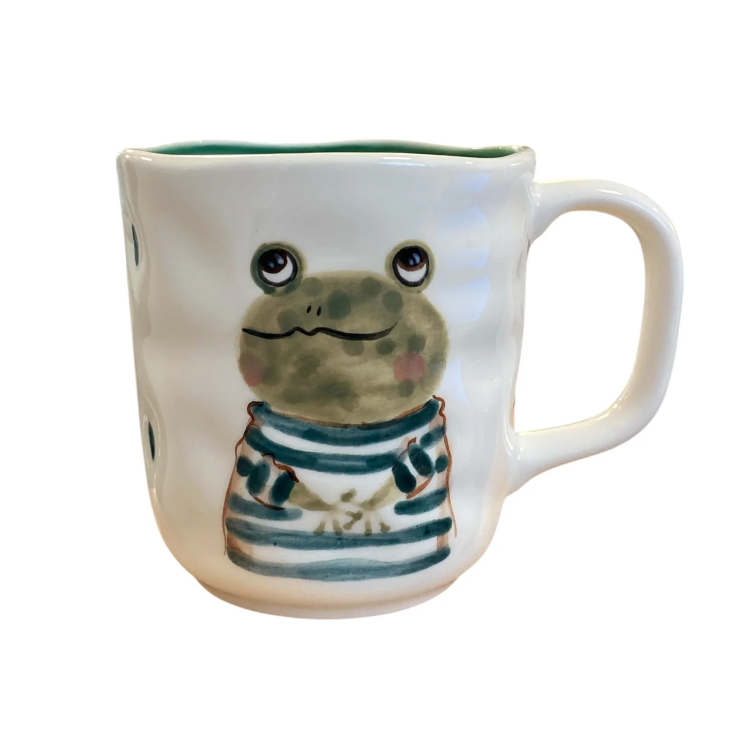 Керамическая кружка ручной работы с росписью Лягушка в полосатом свитере. Производитель - керамистка Ситникова Юлия (Kim.ceramics).