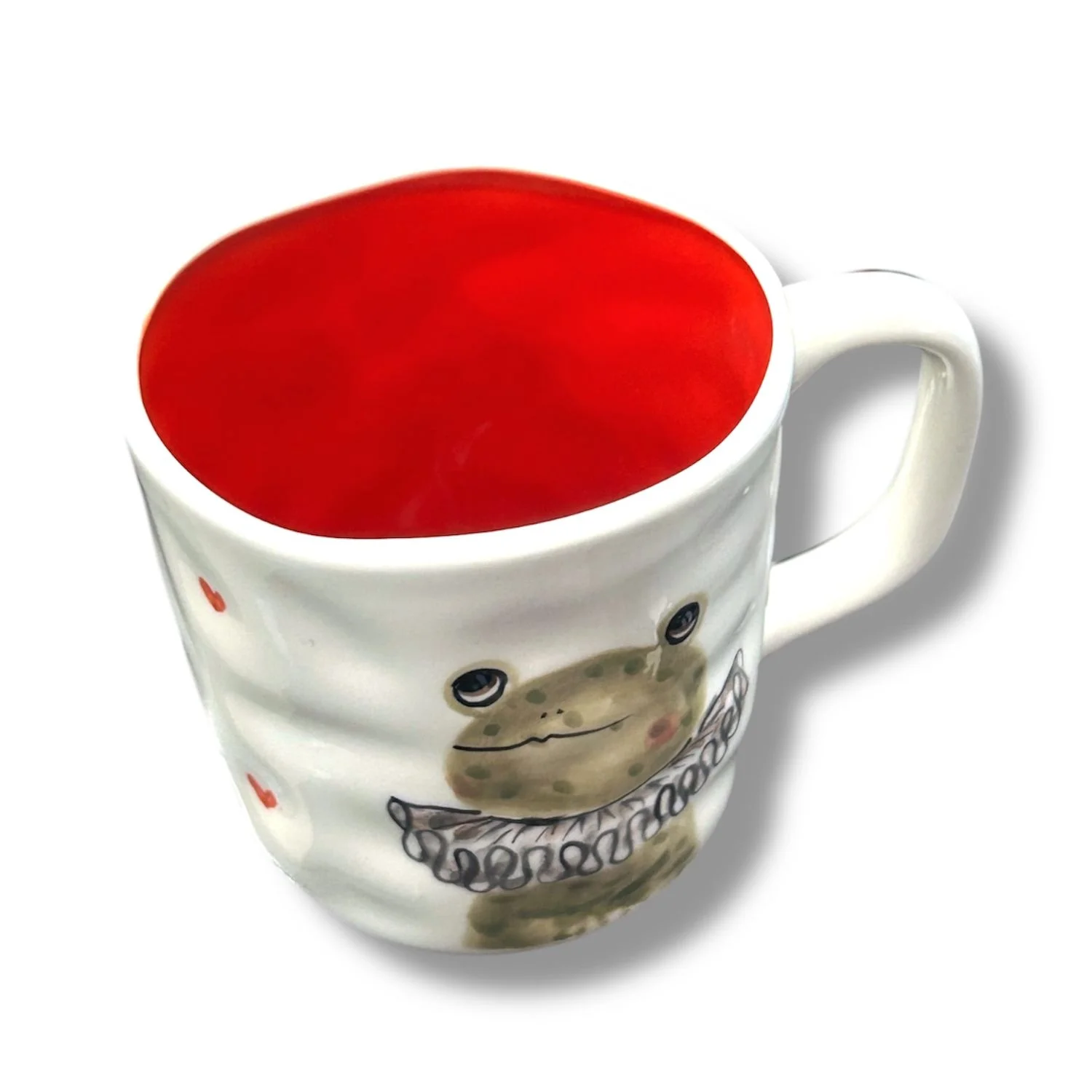 Керамическая кружка ручной работы с росписью Лягушка в жабо с сердечками. Производитель - керамистка Ситникова Юлия (Kim.ceramics).