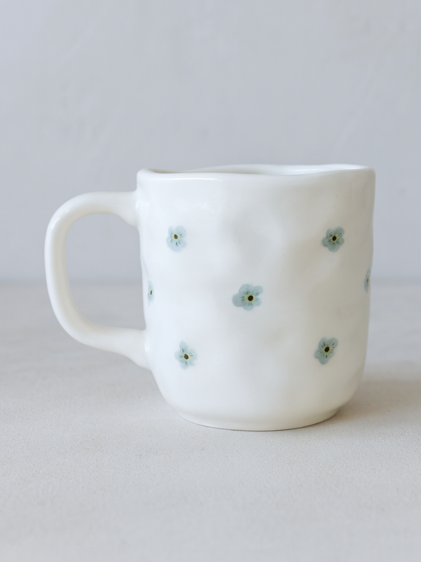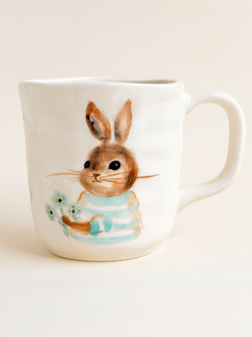 Кружка ручной работы с росписью Зайка с голубыми цветами, фарфор, 350 мл